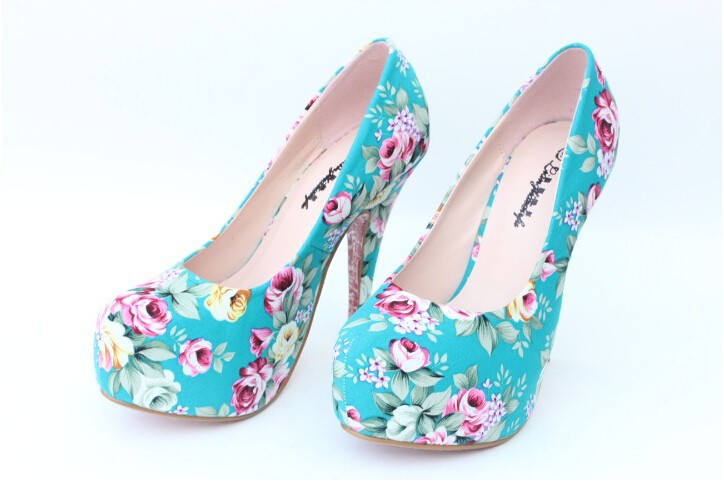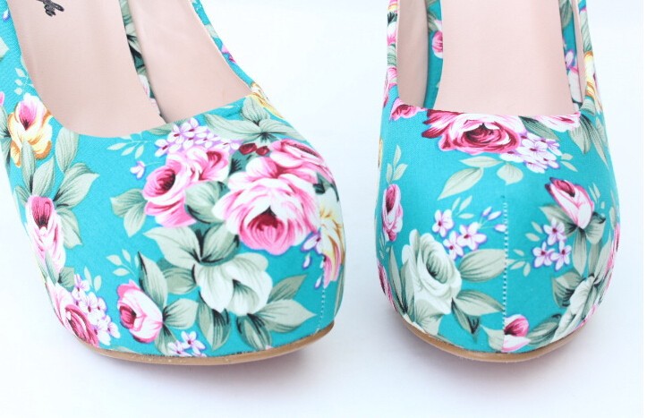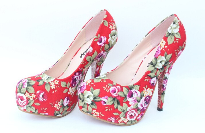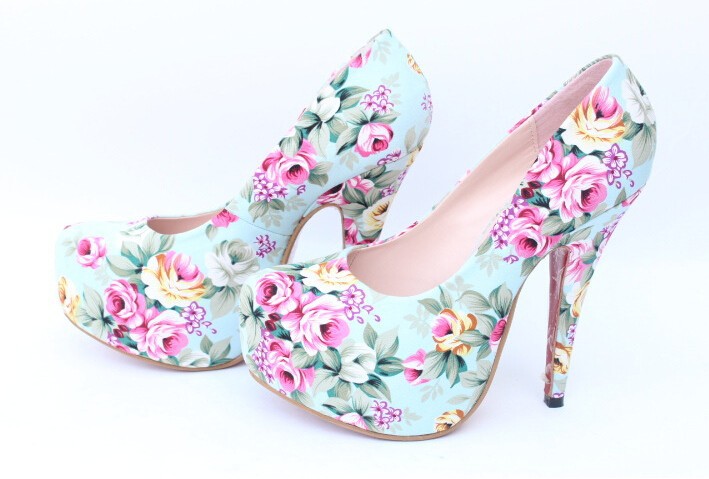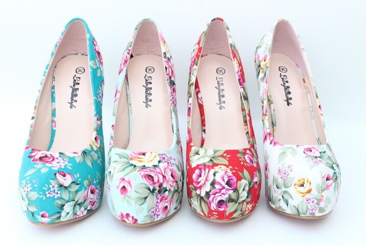 32-43 Women’s high heels sexy printing flowers platform shoes Nightclubs sys-90