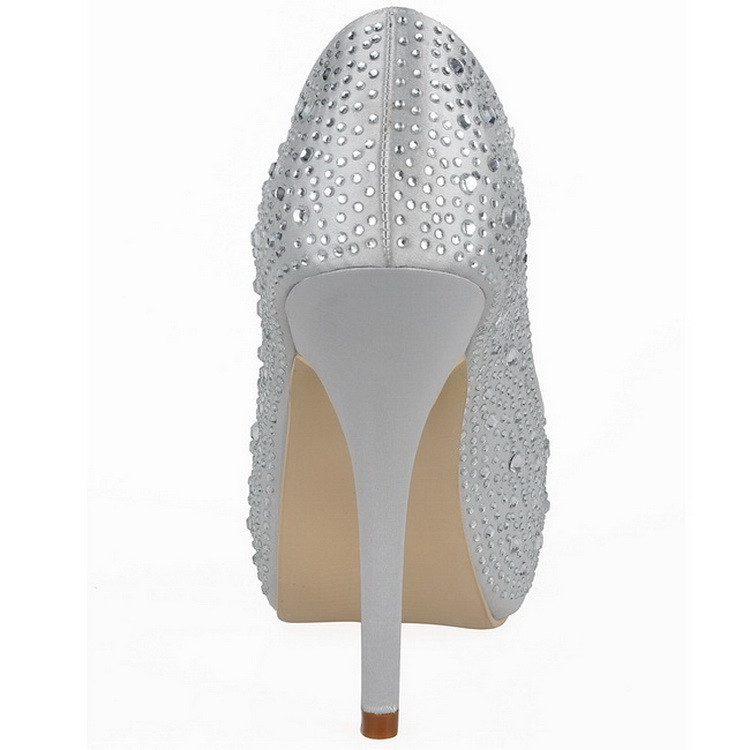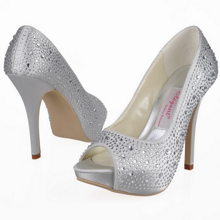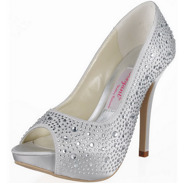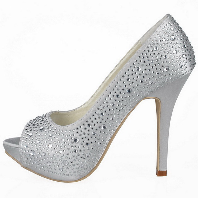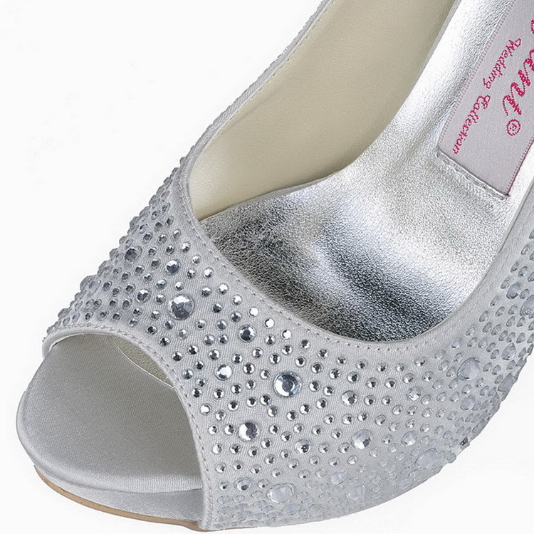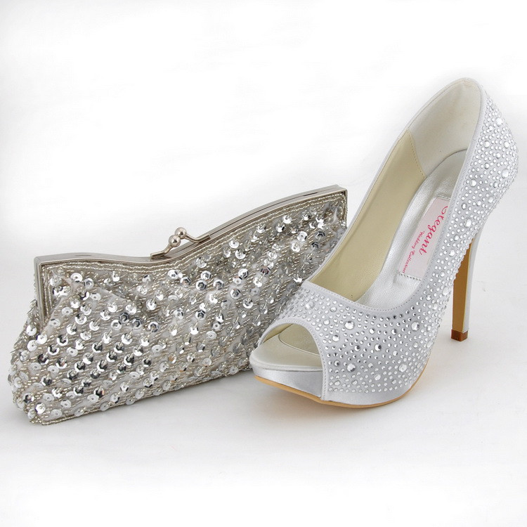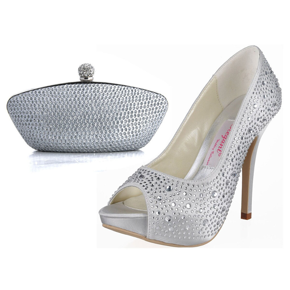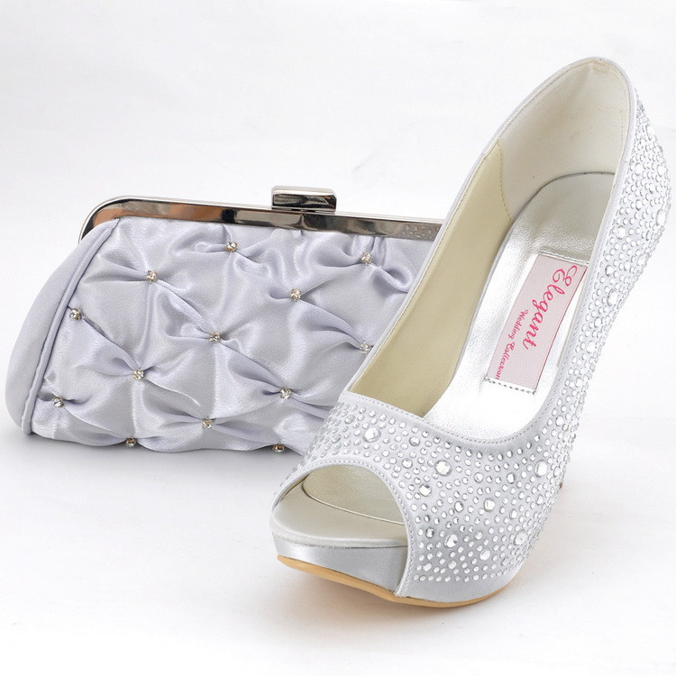 Fashion EP11061-IP Silver Peep Toe Platform 5″ Stiletto Heel Satin Women Pumps with Handbag Clutch
