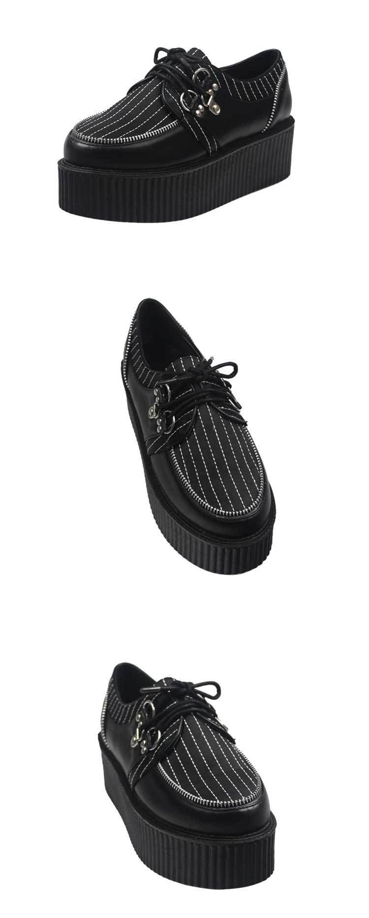 5cm Heel AOD Japanese Harajuku Goth Punk Chain Striped Black Creeper Soled Platform Shoes Women Creepers EUR 35~39