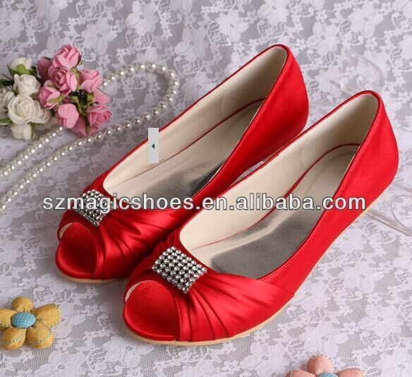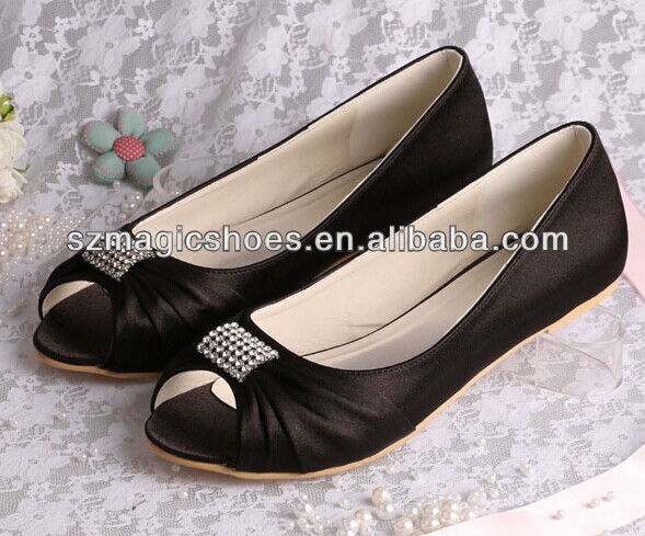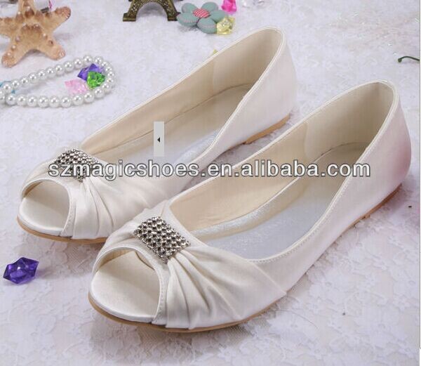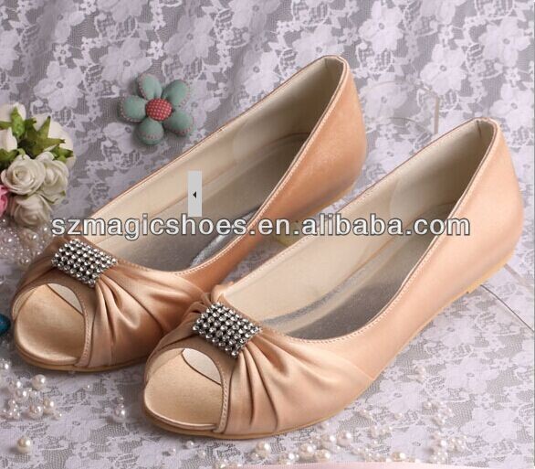 (6 Colors) Women Open Toe Flat Heel Champagne Satin Wedding Evening Party Shoes Free Shipping