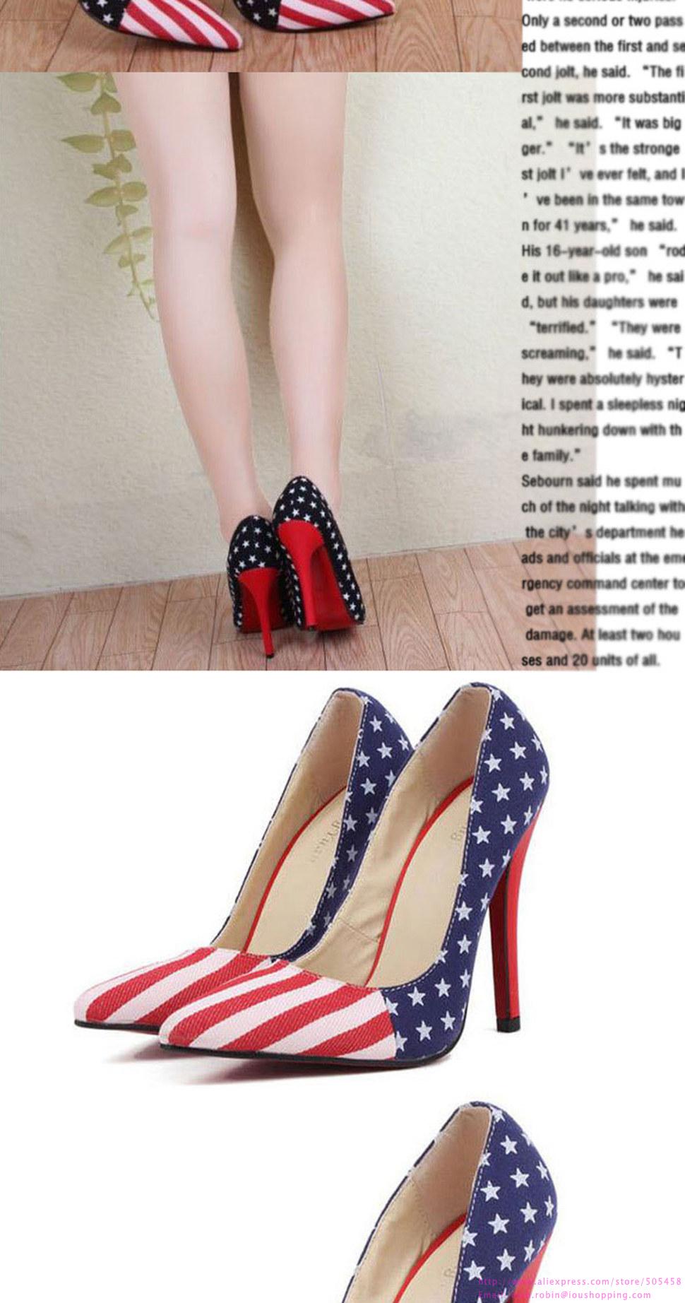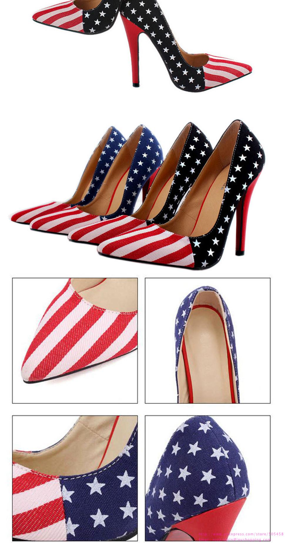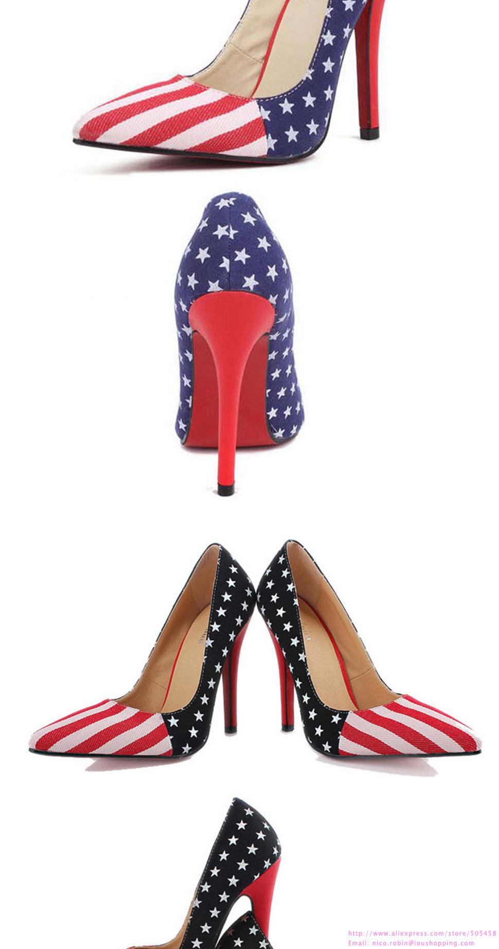 9 Sizes 35-43 Classic Style Red Bottom High Heels Big Plus Sizes Flag Stripe Pointed Toe Women Pumps Fashion Hot Women Shoes