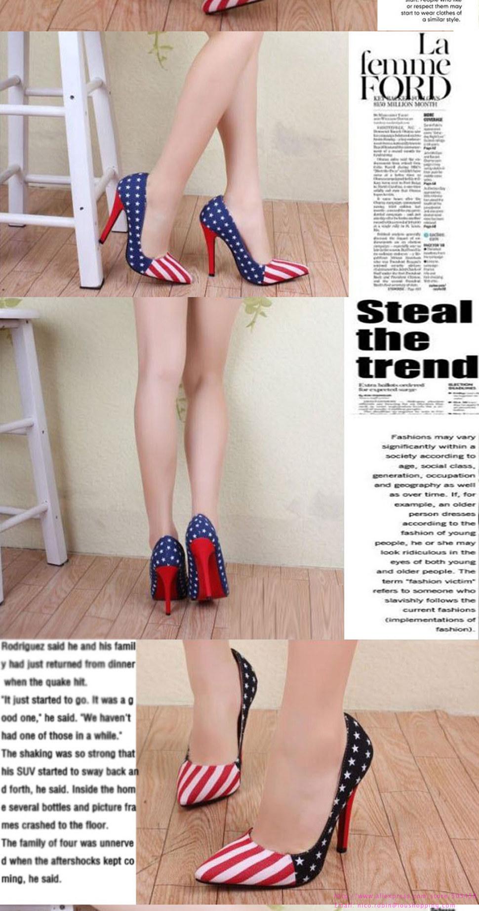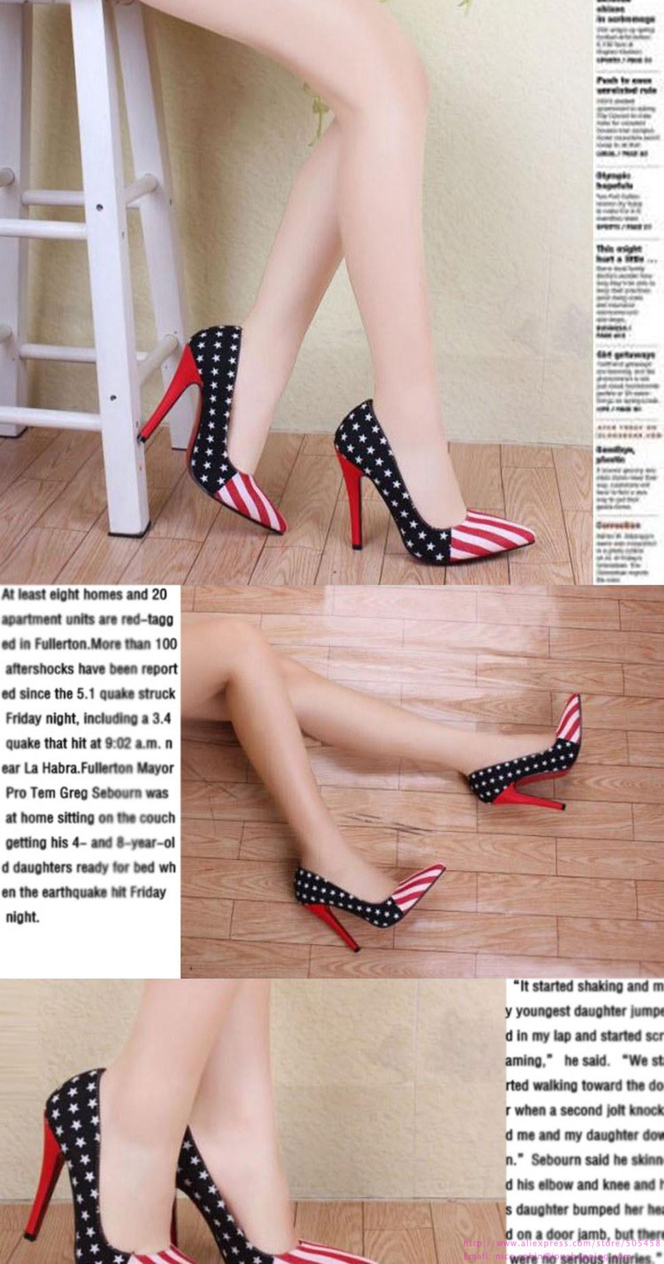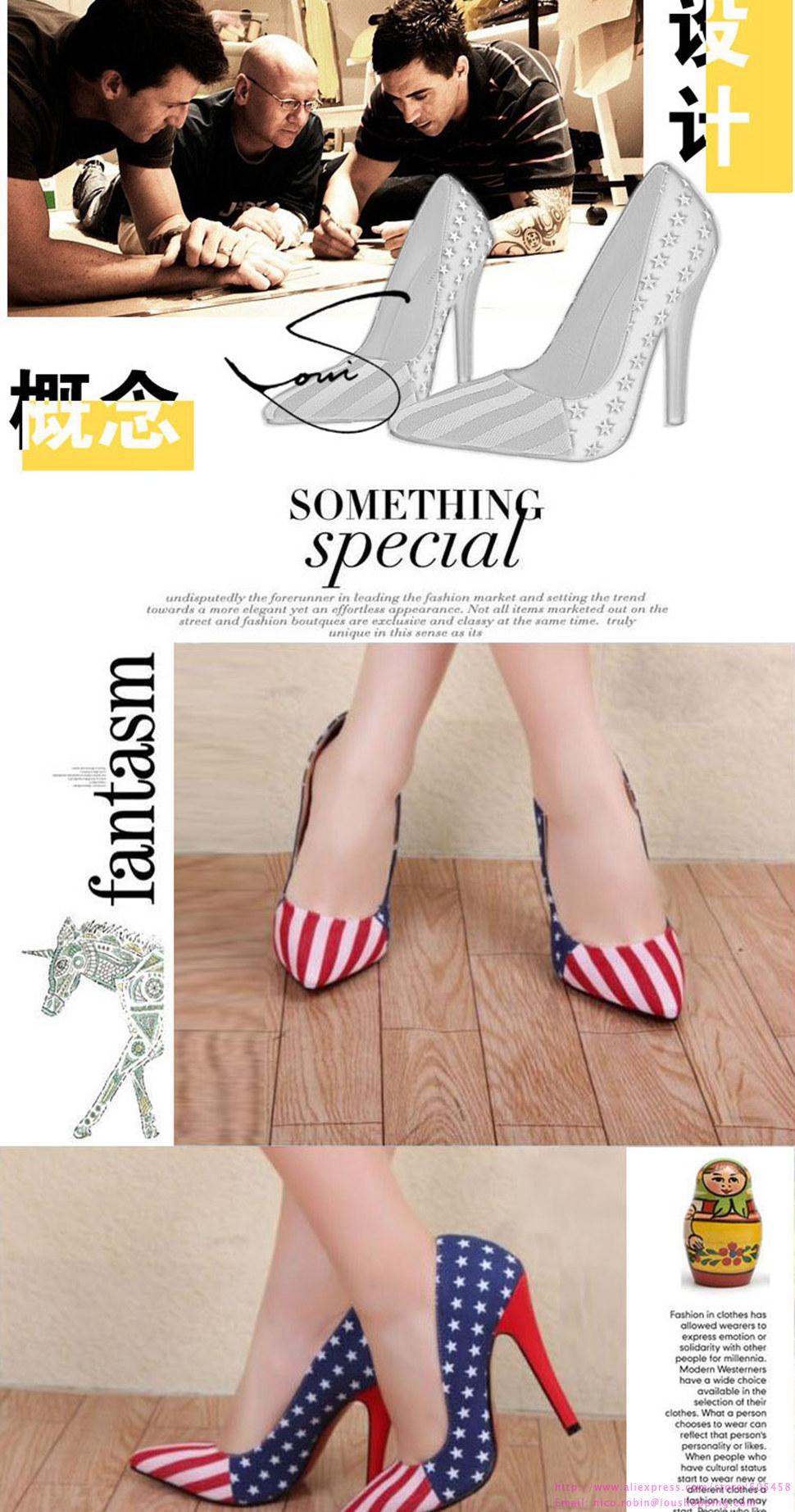 9 Sizes 35-43 Classic Style Red Bottom High Heels Big Plus Sizes Flag Stripe Pointed Toe Women Pumps Fashion Hot Women Shoes