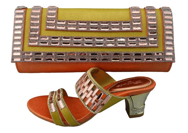 African fashion sandal shoe and matching bag, elegant slipper with bag for free shipping by DHL orange