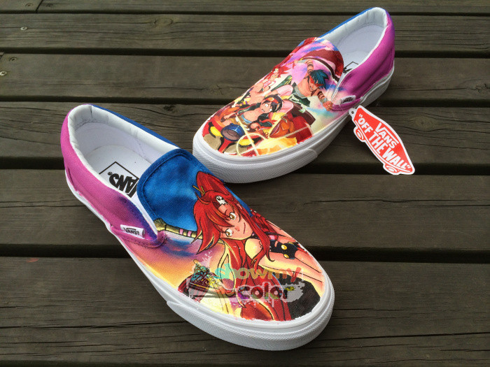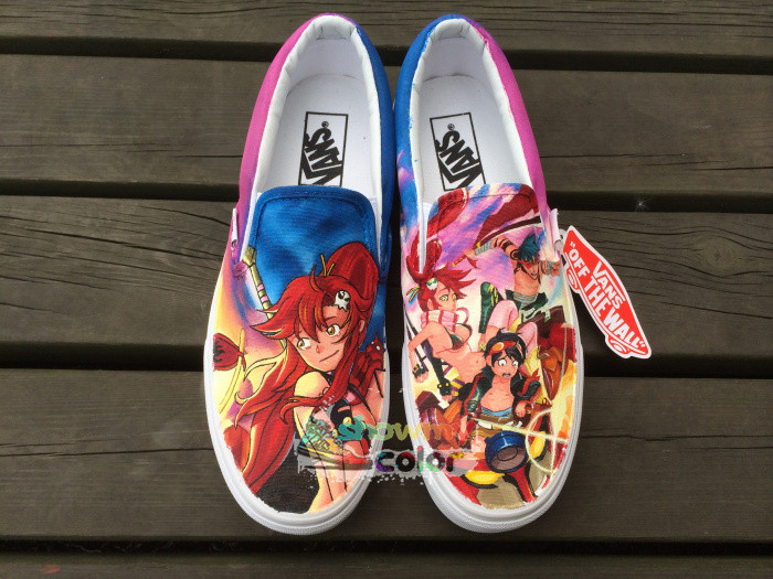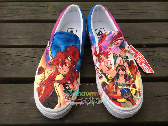 Anime Gurren Lagan Vans Shoes Slip On Canvas Sneaker Hand Painted Custom Vans Shoes for Men Women