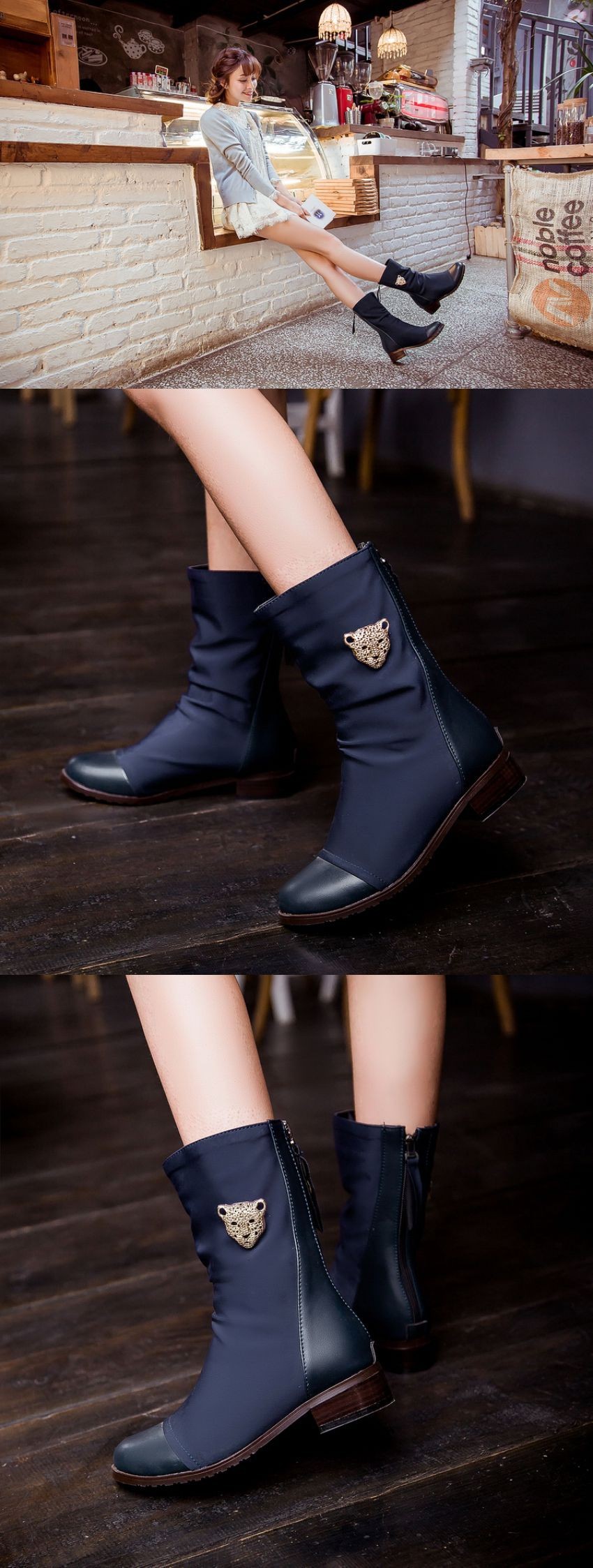 ARMOIRE 2014 New Sexy Red Black Brown Blue Women Riding Mid Calf Snow Boots Ladies Shoes low Heels AQ107 Plus Big Size 47 33 12