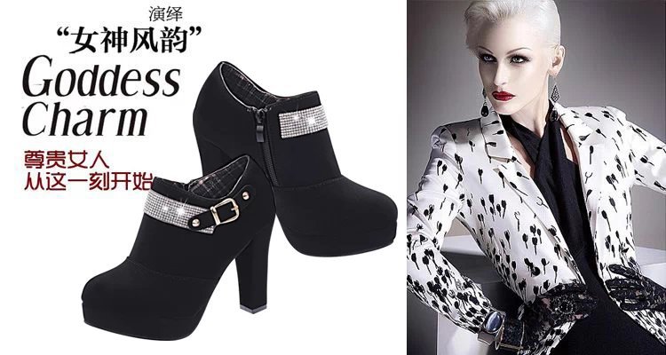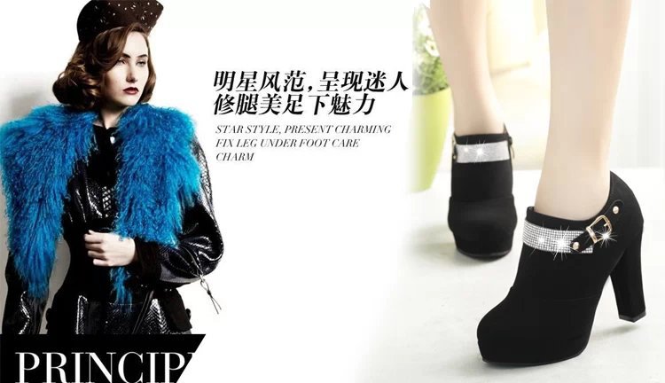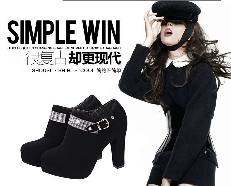 autumn boots rhinestone singles crude high-heeled boots shoes women’s suede boots ankle boots heels platform X96