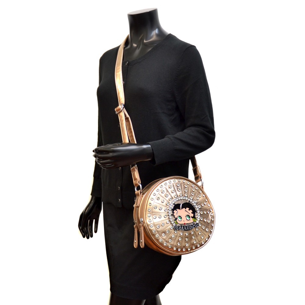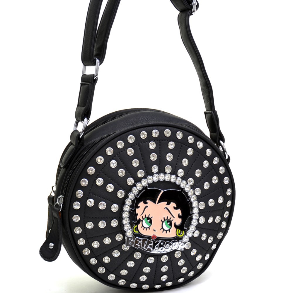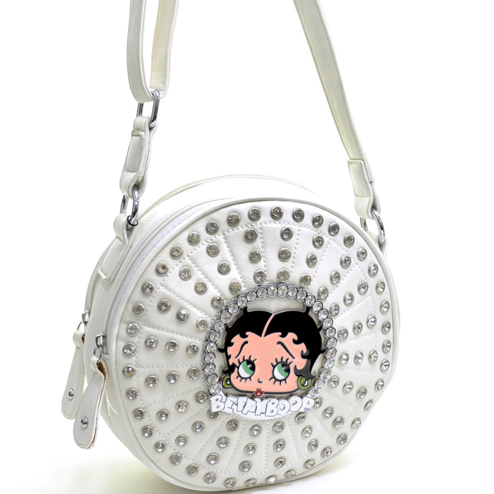 Betty Boop Cylinder Messenger Bag with Rhinestones and Stud Accent