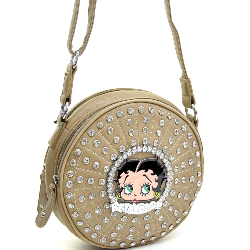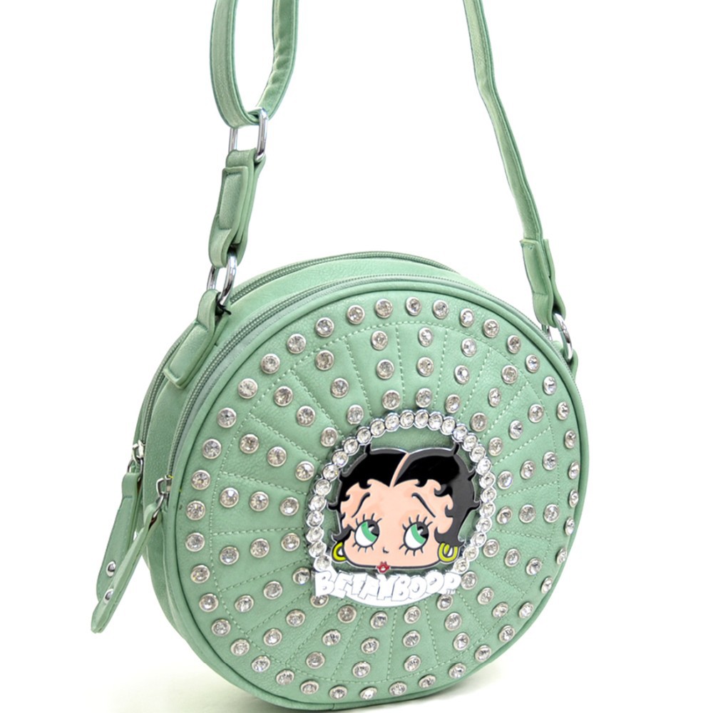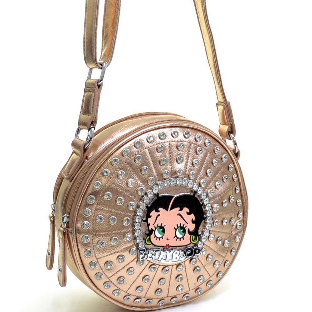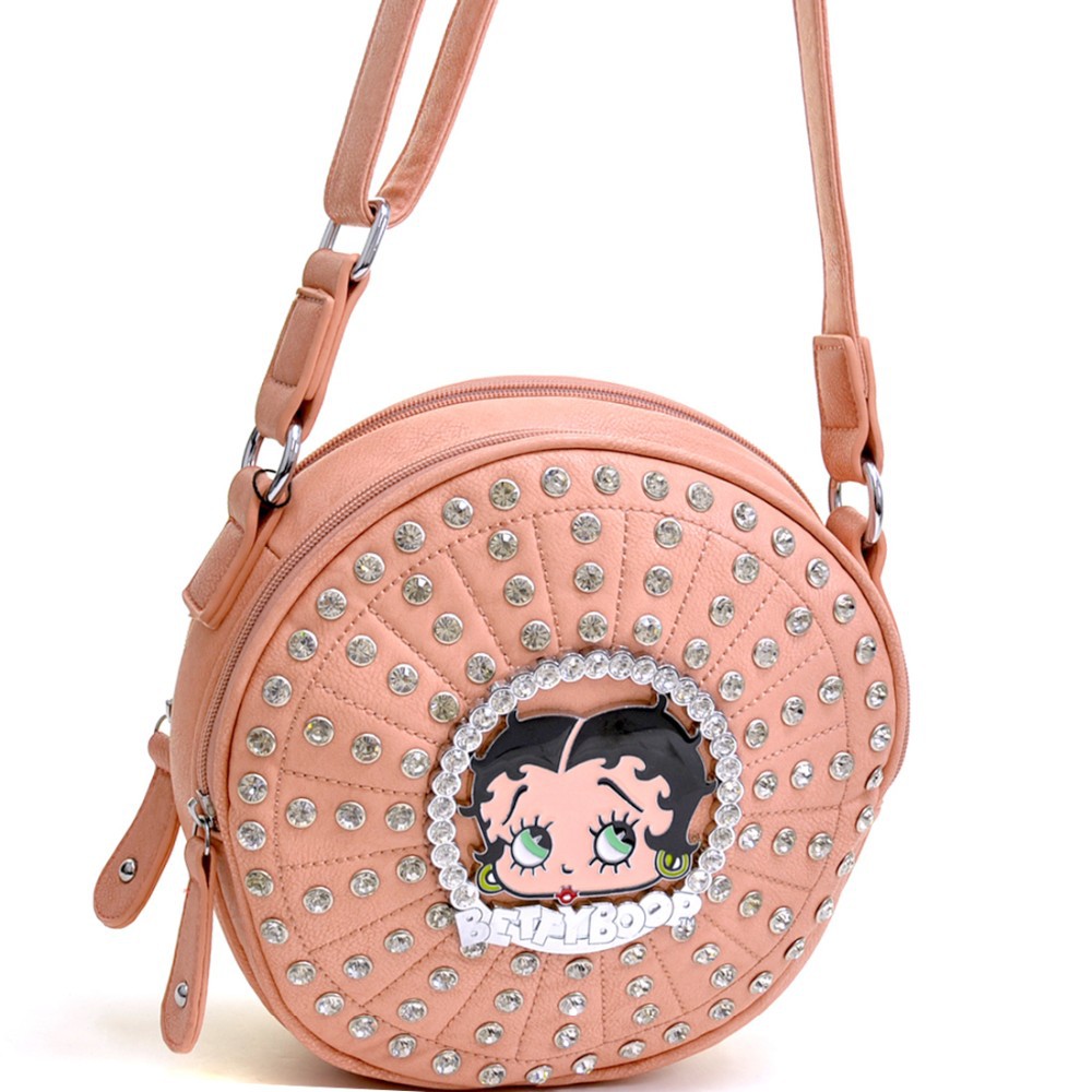 Betty Boop Cylinder Messenger Bag with Rhinestones and Stud Accent
