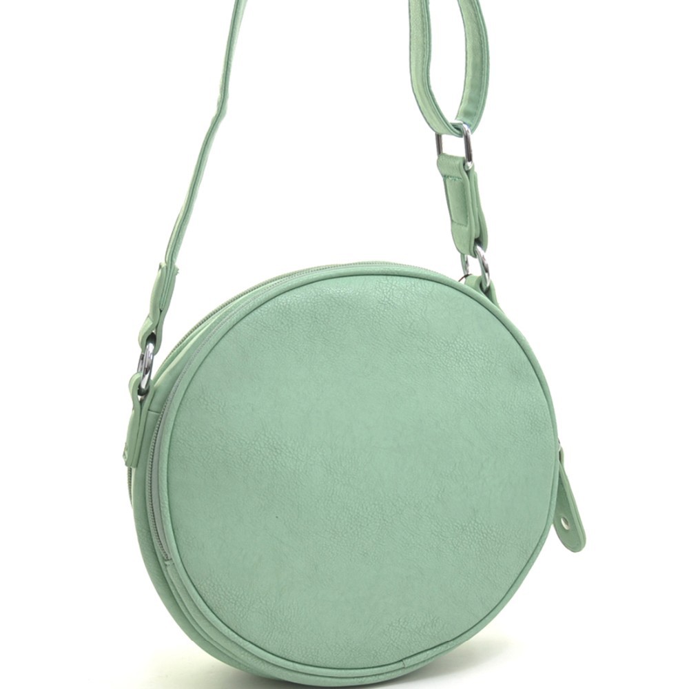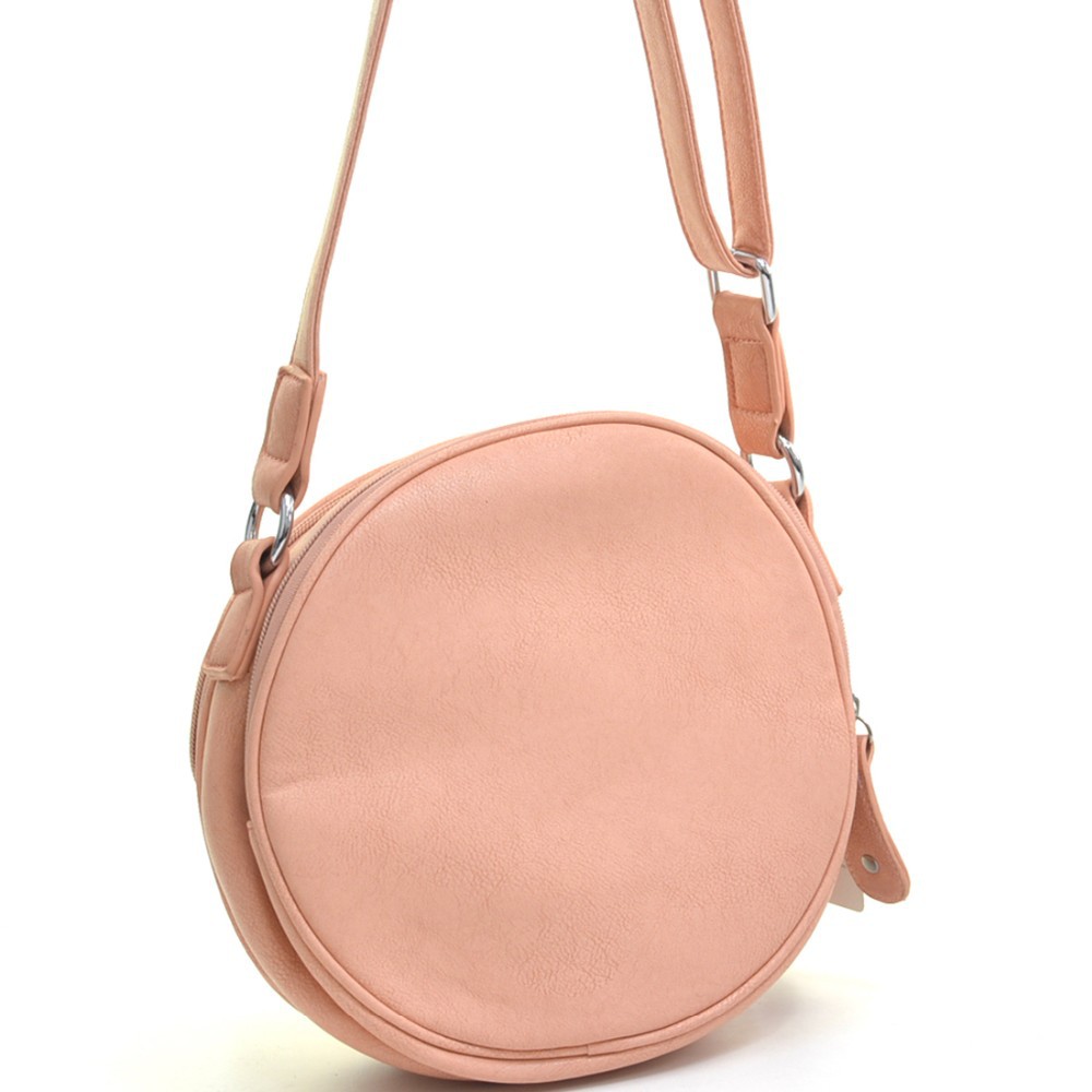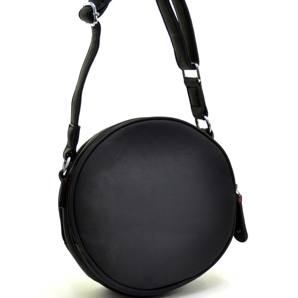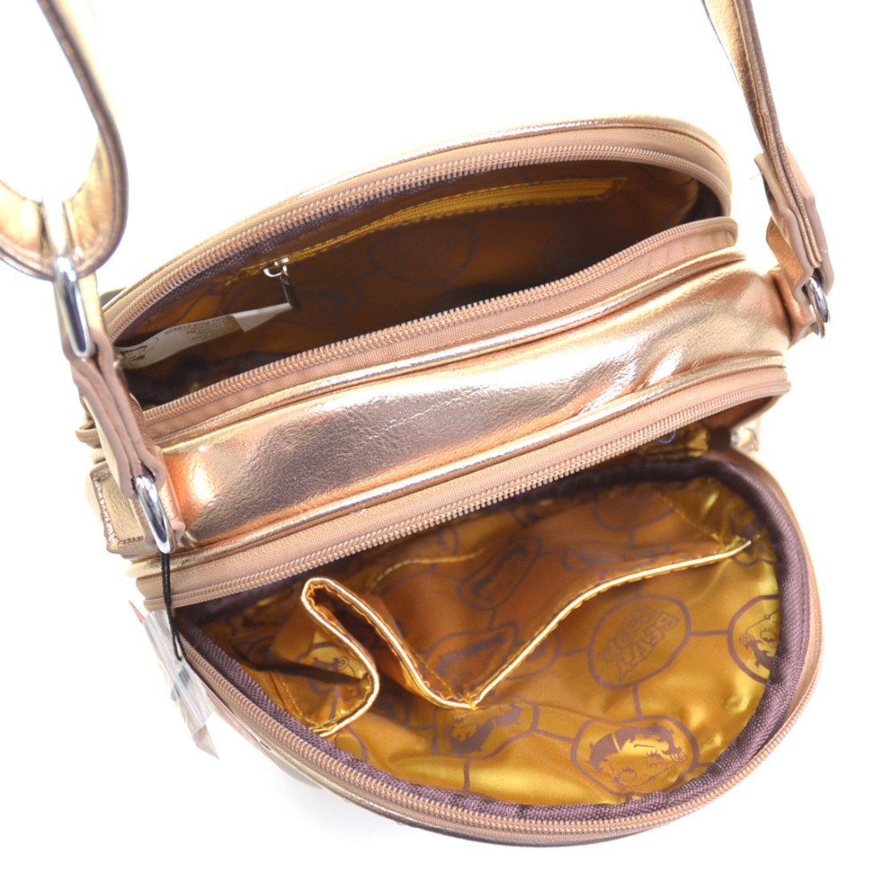 Get bedazzled by the rhinestones and studs on this Betty Boop® cylinder messenger bag. This roomy messenger bag contains two separate zippered compartments to help you keep everything organized. Travel conveniently and hands free with this light weight messenger bag. Betty Boop® officially licensed Made of faux leather Center Betty Boop plaque adorned with rhinestones Mixed rhinestones and studs on circling Betty Boop plaque Dual zipper closure Inside covered with Betty Boop themed monograms Interior features a back-wall zip pocket and front-wall multifunctional pockets. 48″ adjustable shoulder strap Straps connected by metal rings Silver tone hardware Approx. Size: 9″W x 9″H x 2.5″D Strap Drop Length: Adjustable 38″-40″