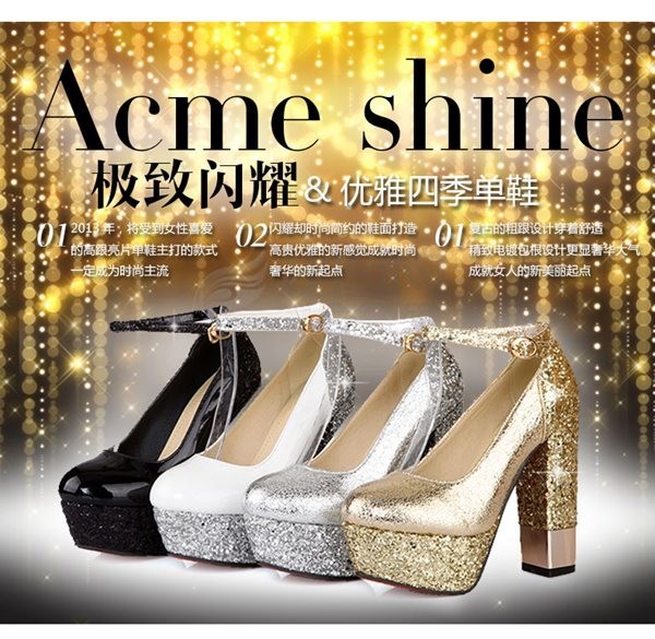 Big size 33-42 New 2014 Fashion Buckle Patent Leather Sequins Square heel Pumps women shoes High-heeled shoes Free Shipping