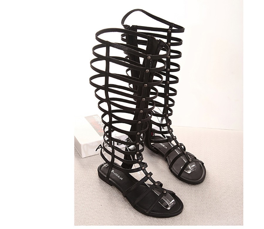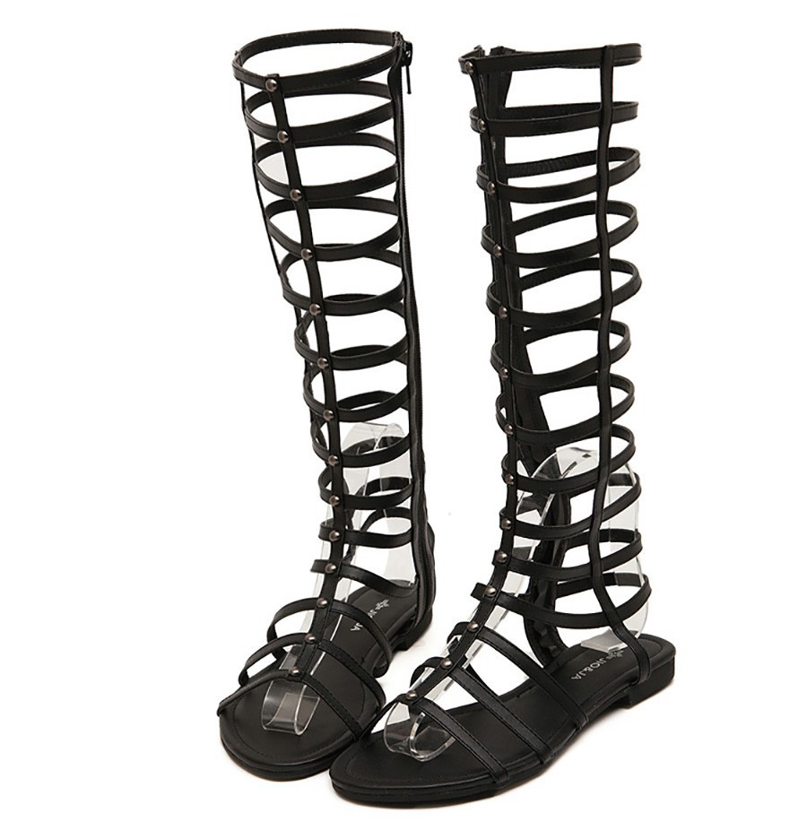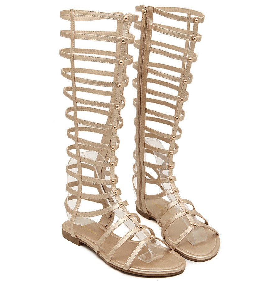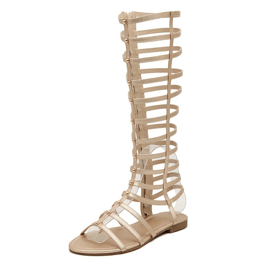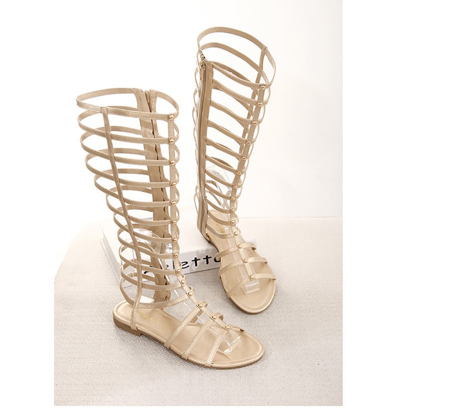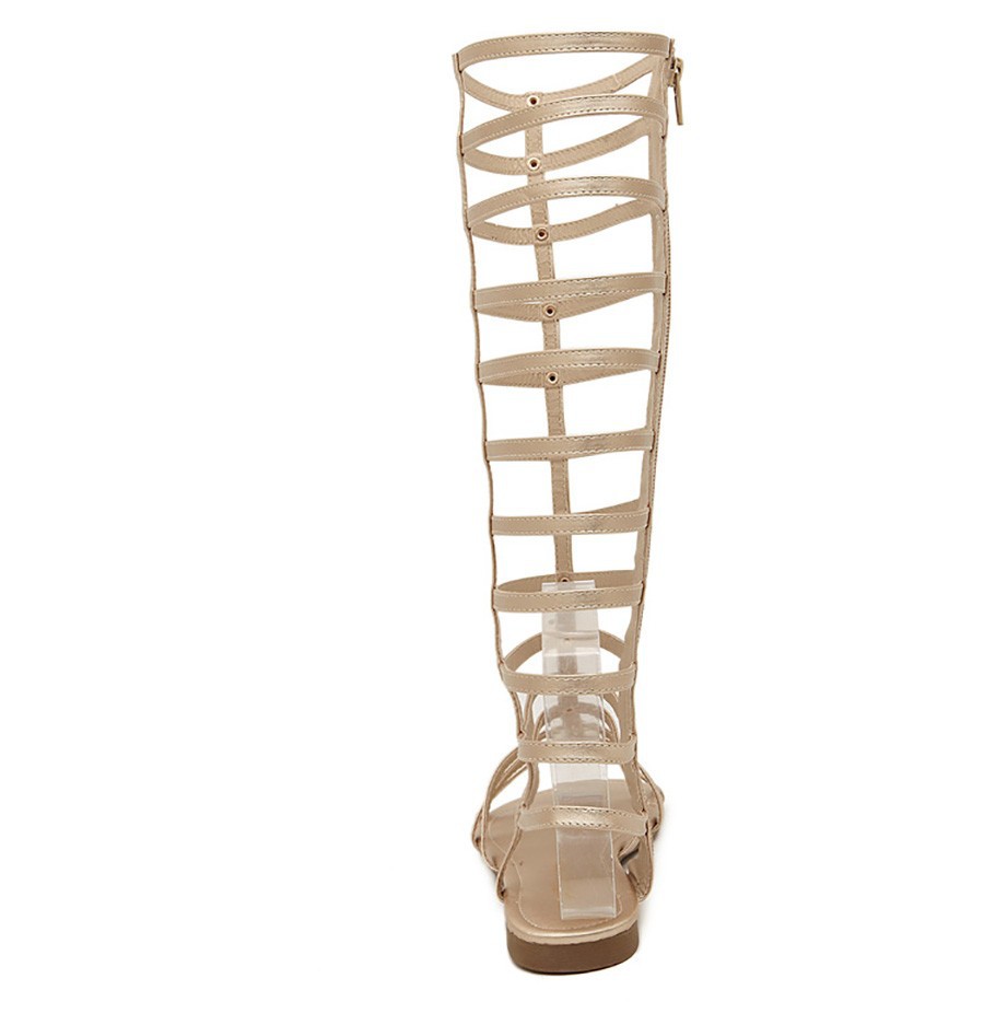 Big Size new 2014 Fashion Women Summer Flats Sexy Knee High Lace Up boots Casual Flat Shoes Women Sandals free shipping