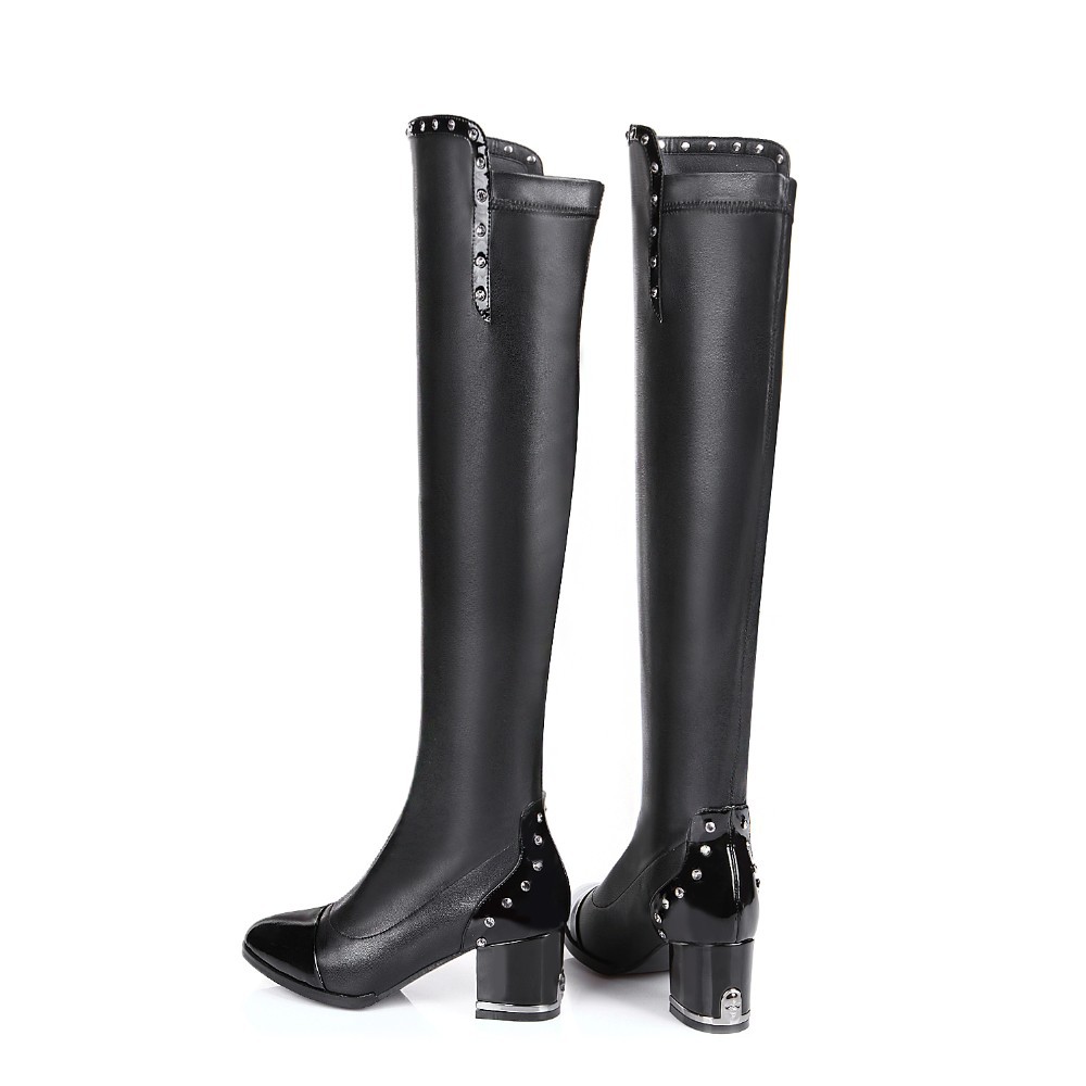 BASSIRIANA – classic women’s heel high boots, female winter low heel boots