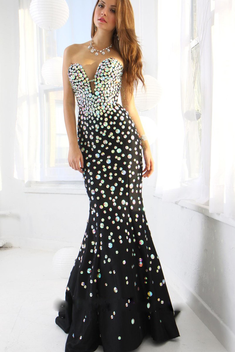 Black Crystal Mermaid Prom evening dresses 2014 vestido de festa Sweetheart Lace Up Sexy Long Evening Dresses 2014 New Arrivals