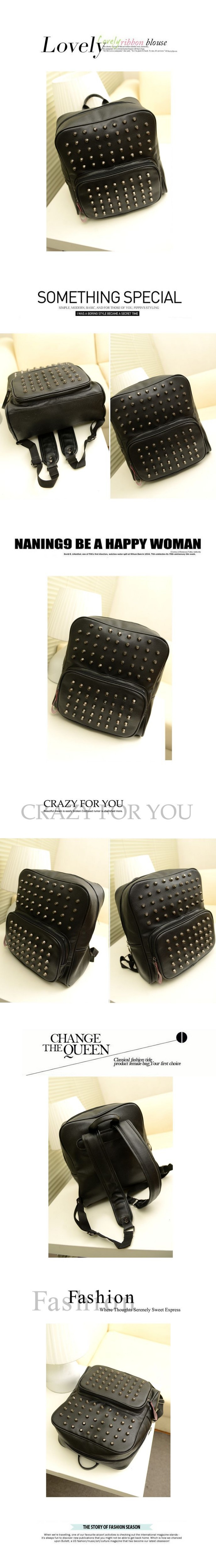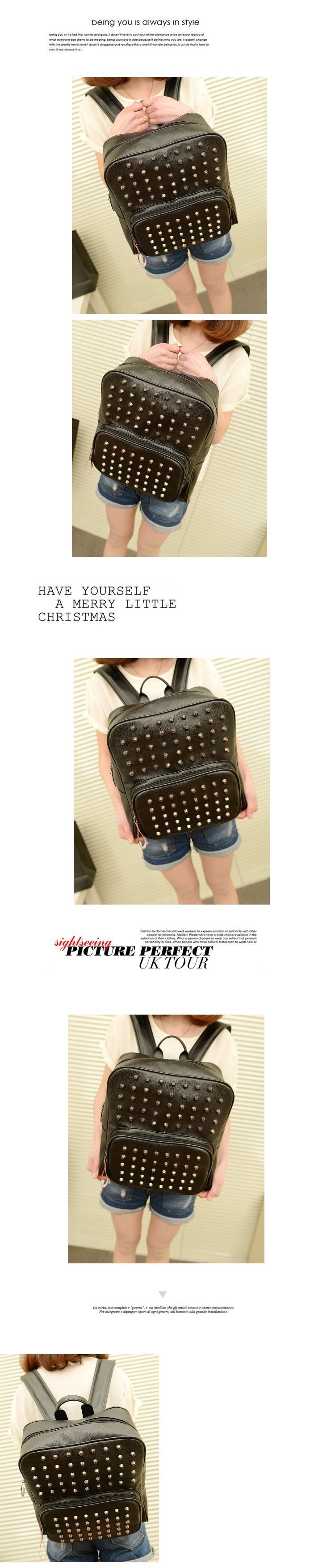 Black Leather Backpack Full Rivet Cool Shoulder Bags For Teenagers Soft PU Bag Vintage Fashion Women British Style Packbag P03