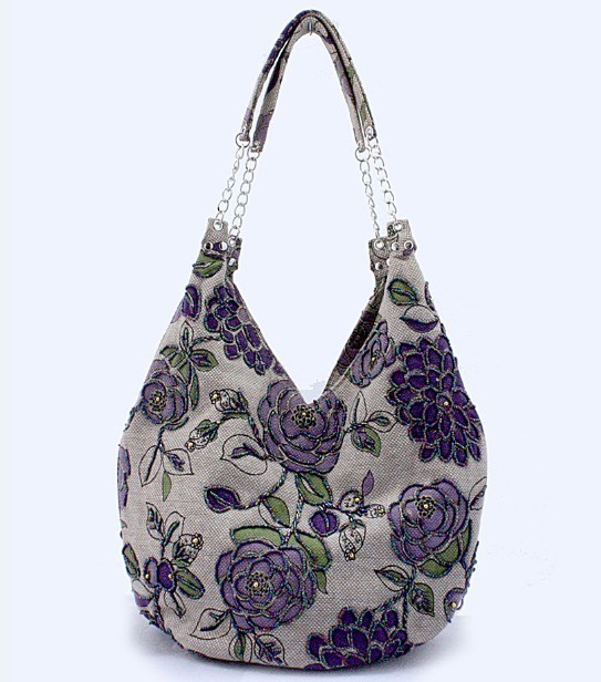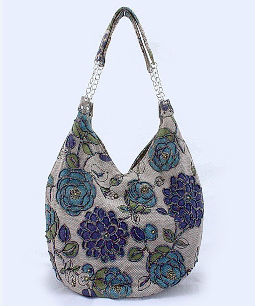 Blue Handmade Shoulder Bag Ladies Linen Beaded Handbag Evening Bag Shopping Bag Free Shipping 2509 RG