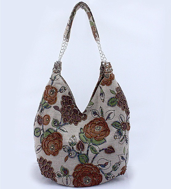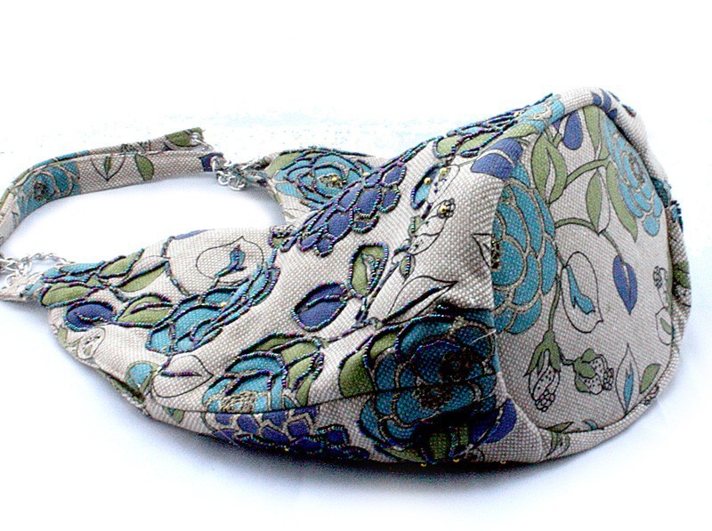 Blue Handmade Shoulder Bag Ladies’ Linen Beaded Handbag Evening Bag Shopping Bag Free Shipping 2509-RG