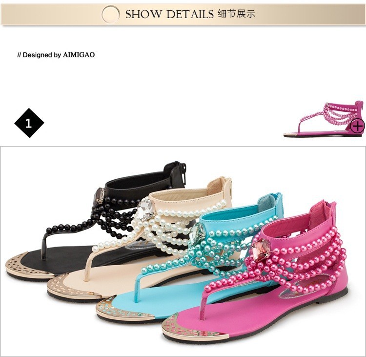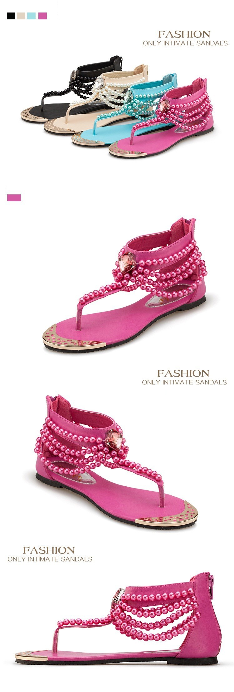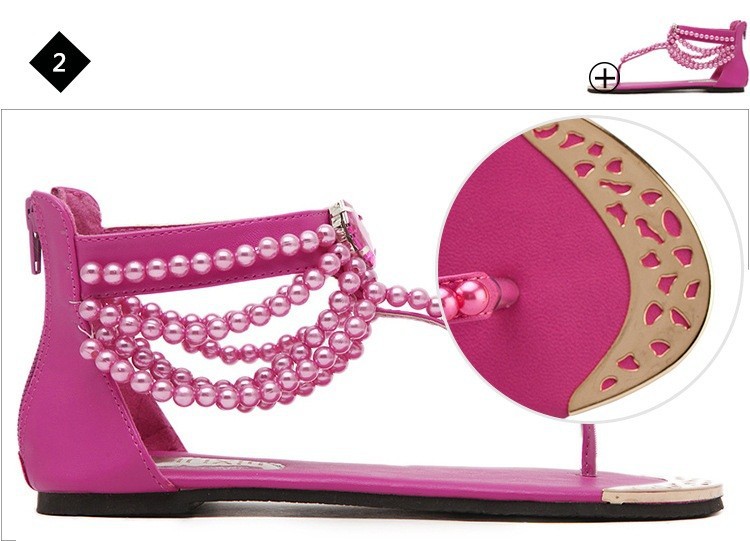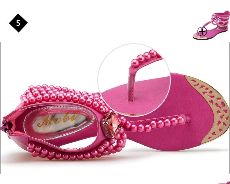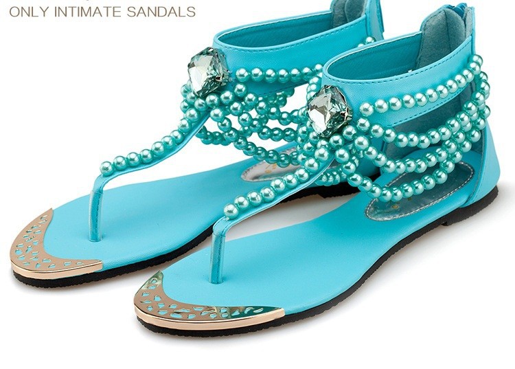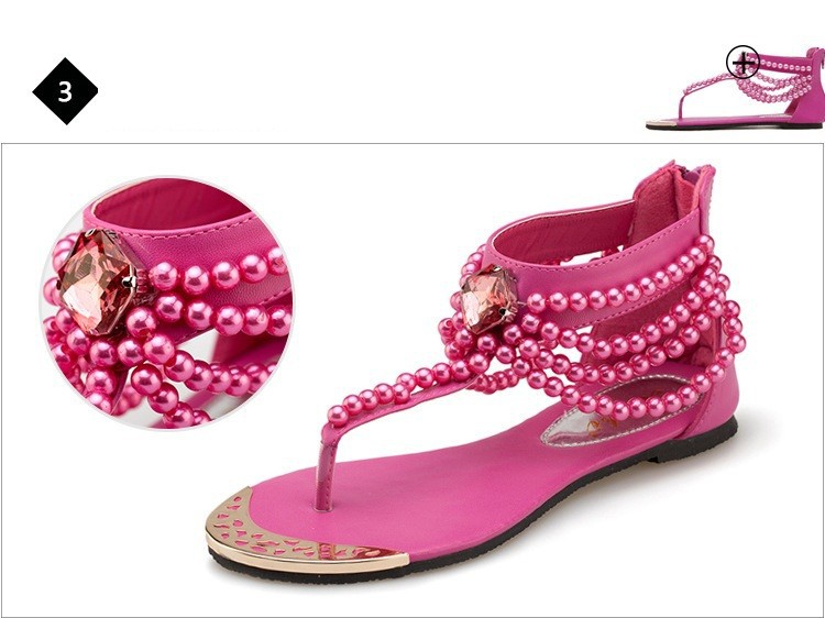 Bohemian white pearl women flip-flops open toe sandals 2014 women flats sandles summer flat sandals ladies’ sandals Roman shoes