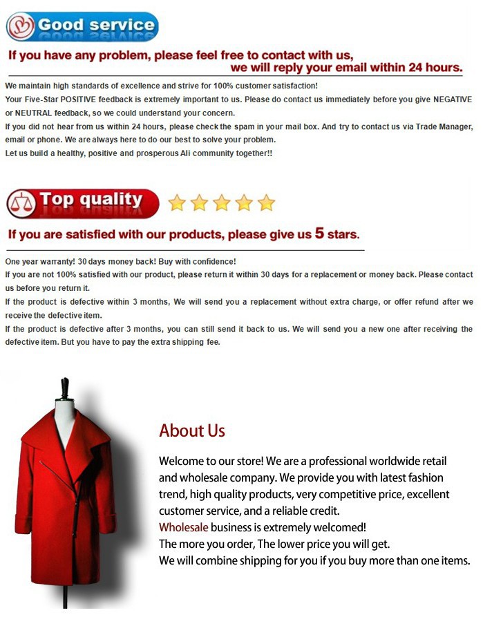 | Return Policy | If the product you receive is not as described or low quality, the seller promises that you may return it before order completion (when you click "Confirm Order Received" or exceed confirmation timeframe) and receive a full refund. The return shipping fee will be paid by you. Or, you can choose to keep the product and agree the refund amount directly with the seller. N.B.: If the seller provides the "Longer Protection" service on this product, you may ask for refund up to 15 days after order completion. |