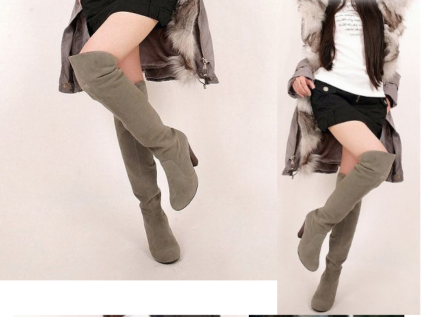 botas femininas 2014 fashion nubuck leather boots high heel winter boots black thick heel over the knee boots female plus size