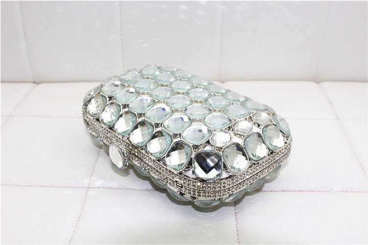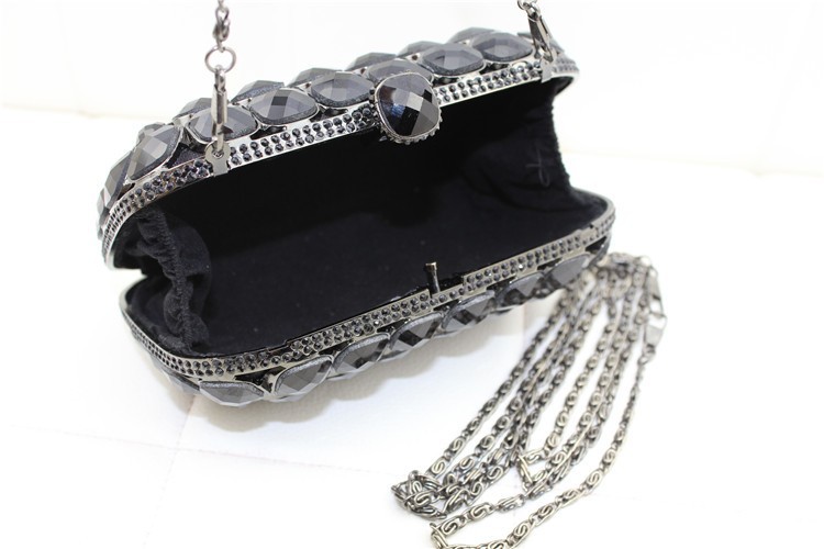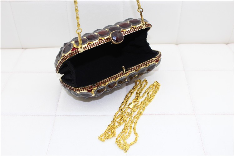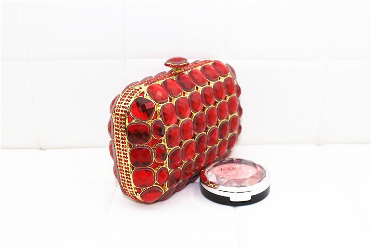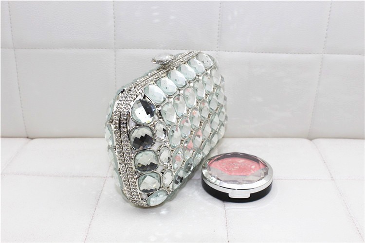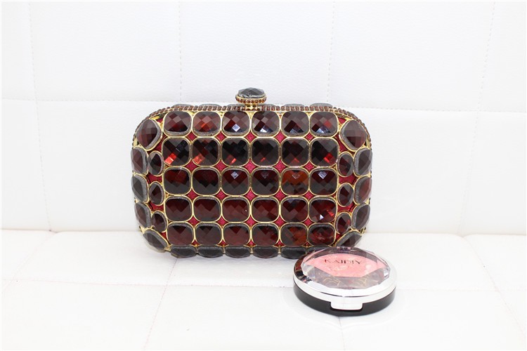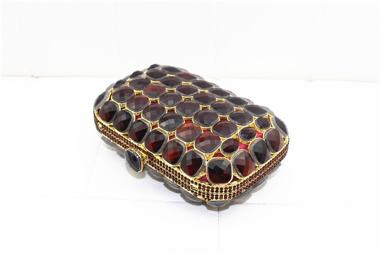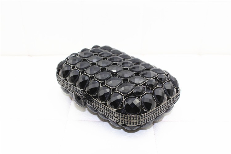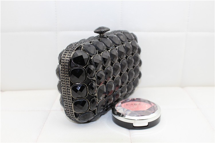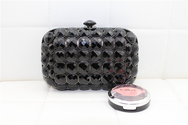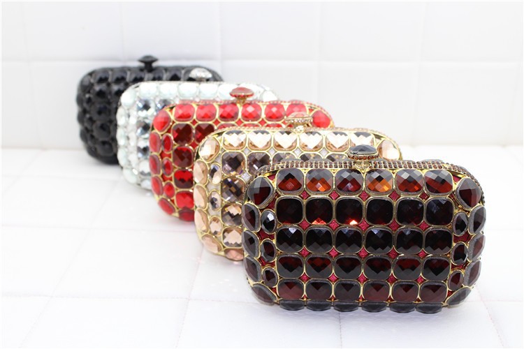 Both Side Luxury Evening Bag Glass Beads Handle Rhinestone Evening Day Clutch Handbag Black/white/red/champagne/dark red NO6077