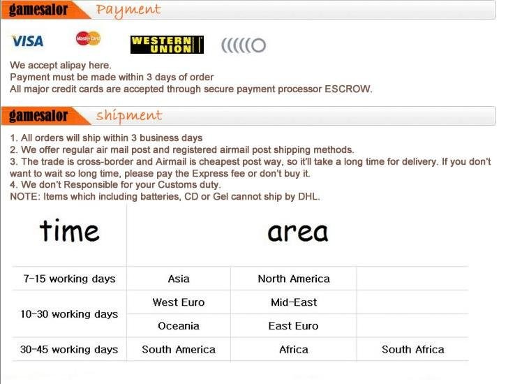 | Post Air Mail | Free Shipping | 15 - 45 days |