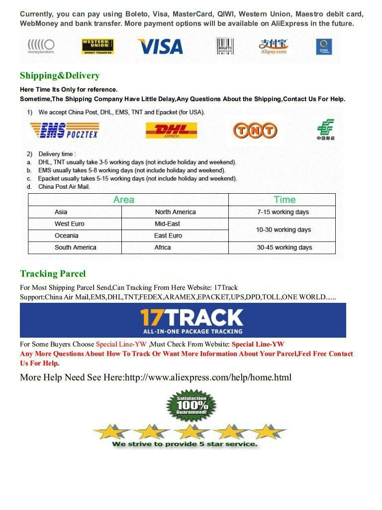| Seller Service | On-time DeliveryIf you do not receive your purchase within 60 days, you can ask for a full refund before order completion (when you click "Confirm Order Received" or exceed confirmation timeframe). |