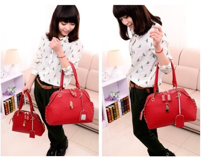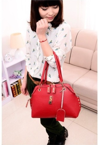 Casual rivet leather messenger bag 2014 New fashion women s handbag shoulder bags lady totes wholesale
