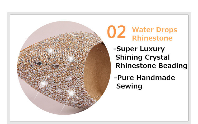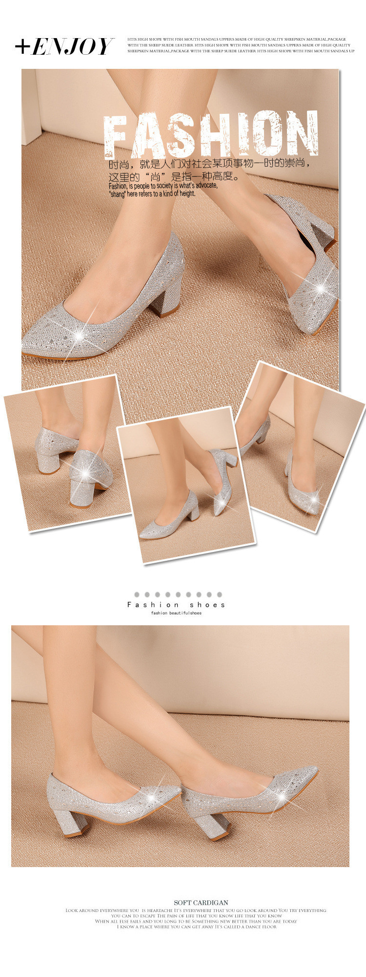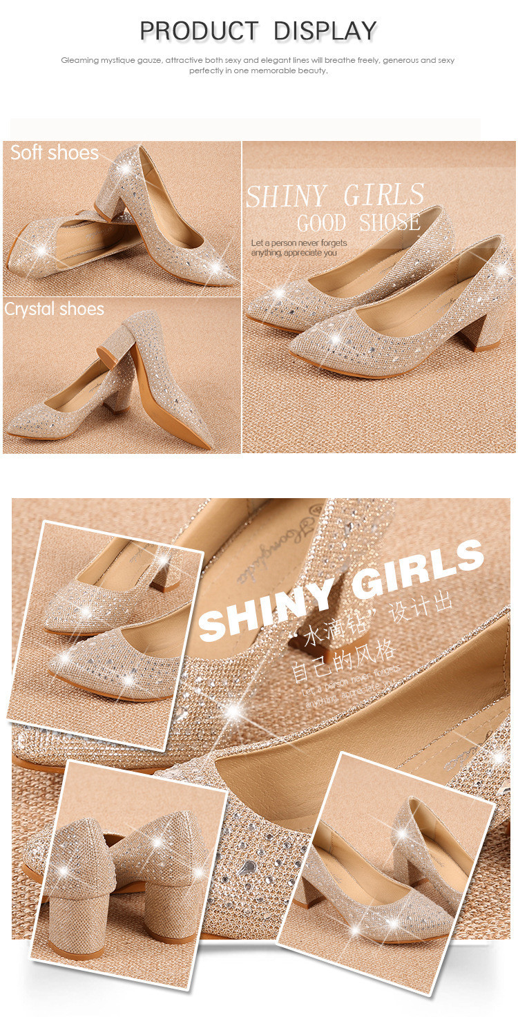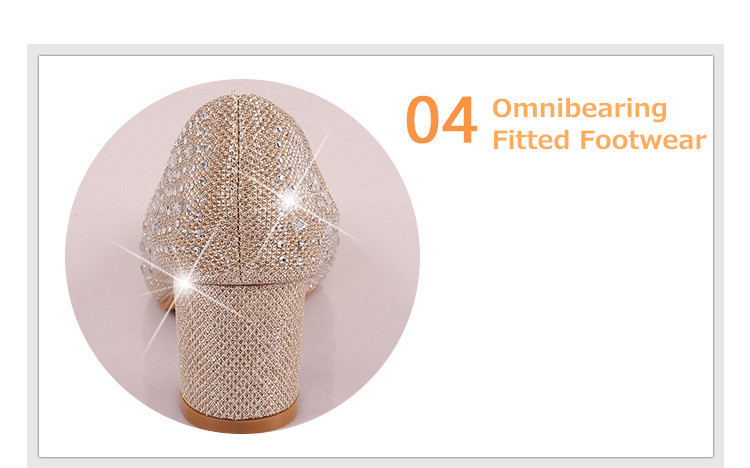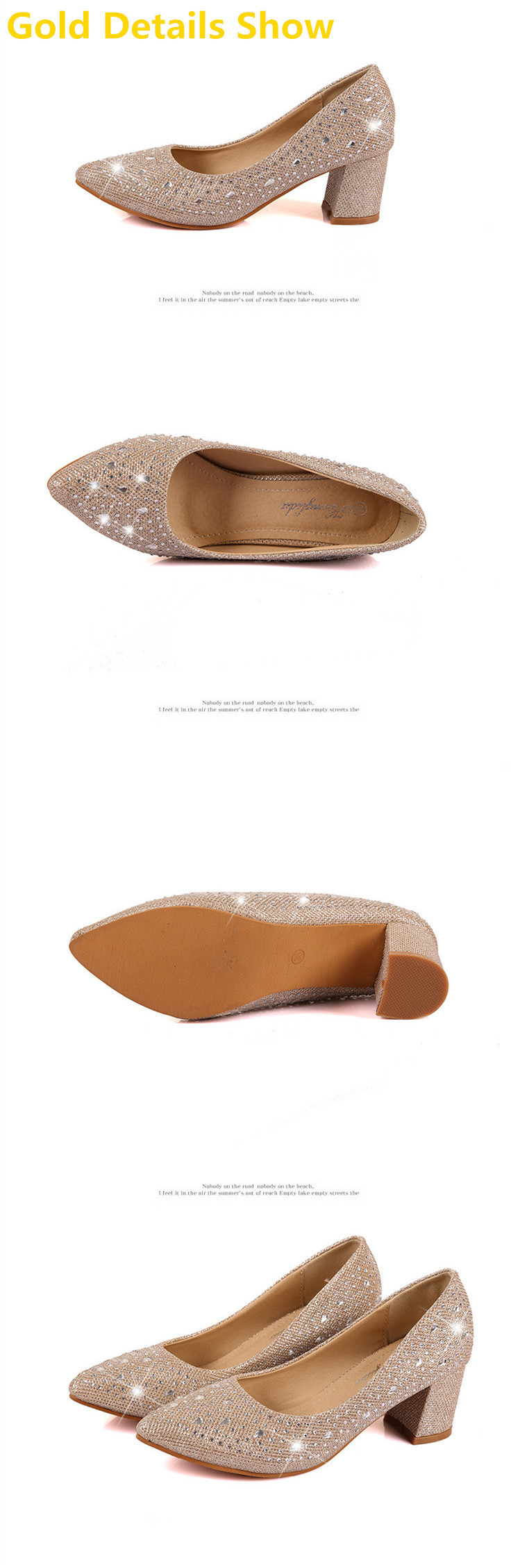 Cheap New Look 2014 Autumn Winter Fashion Rhinestone Prom Shoes Women Pointed Toe Thick Heel Gold