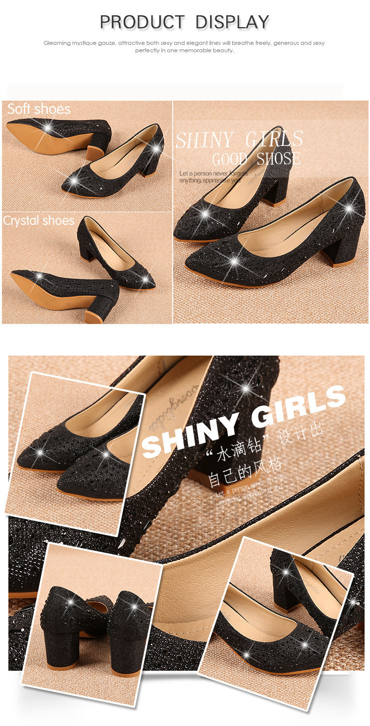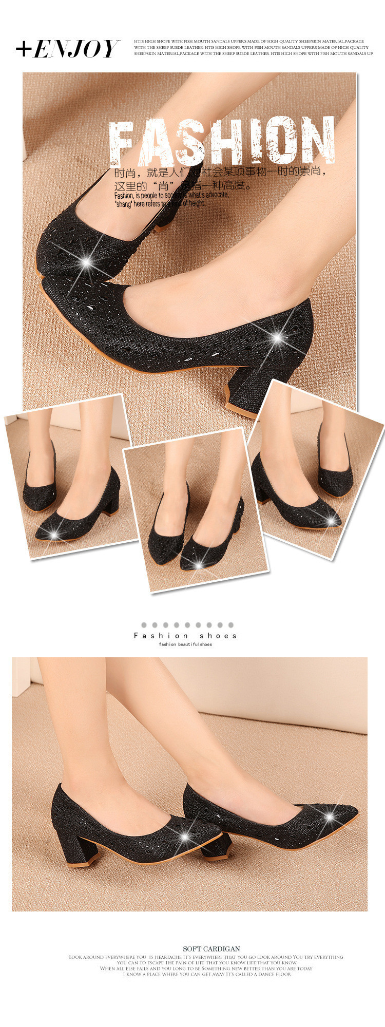 Cheap New Look 2014 Autumn Winter Fashion Rhinestone Prom Shoes Women Pointed Toe Thick Heel Gold Silver Black Kitten Heels