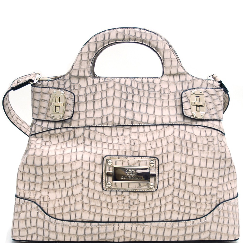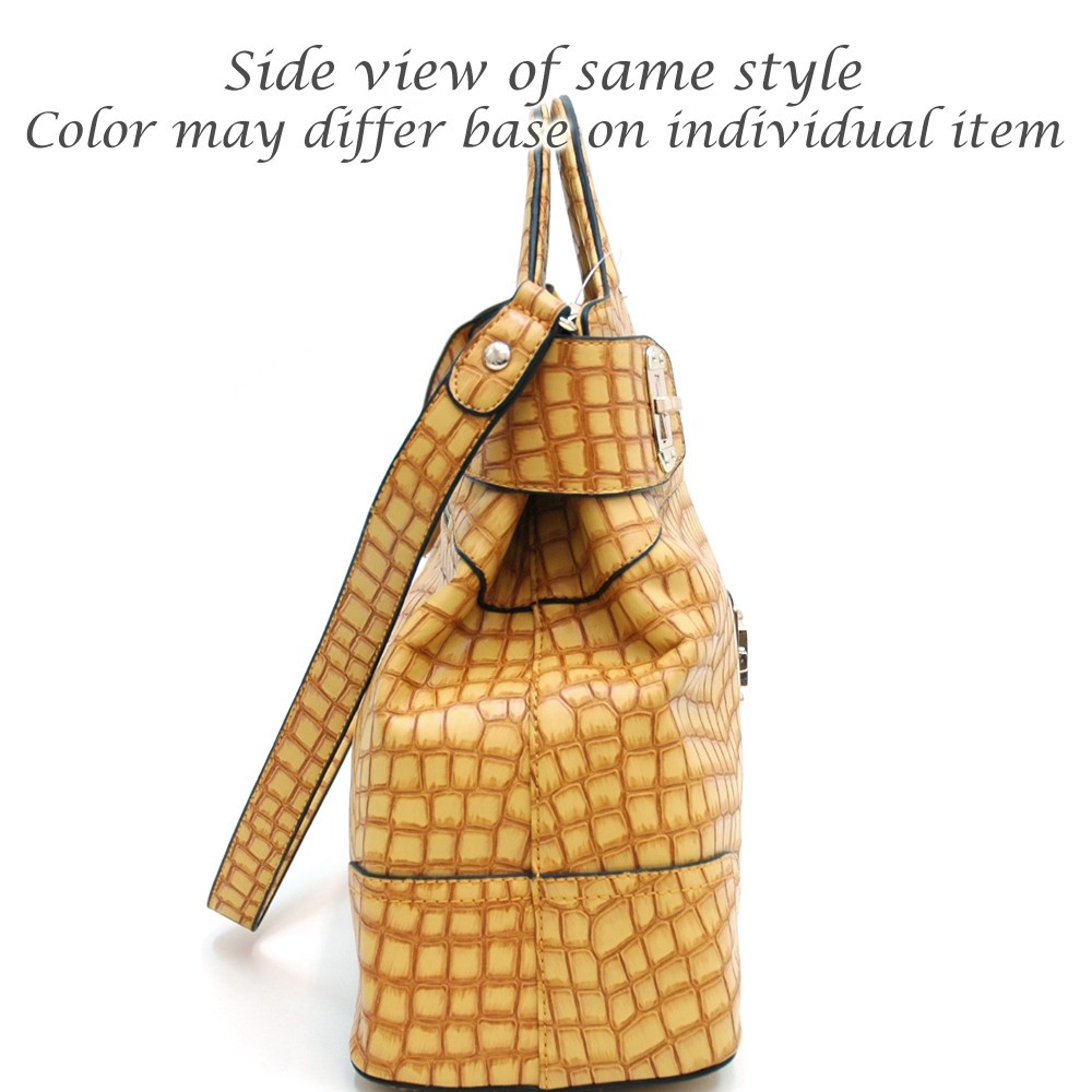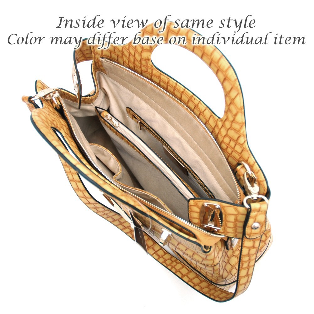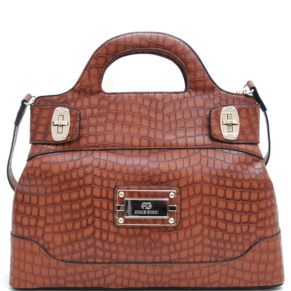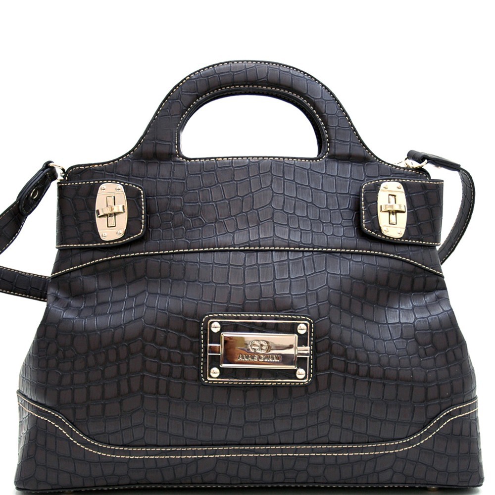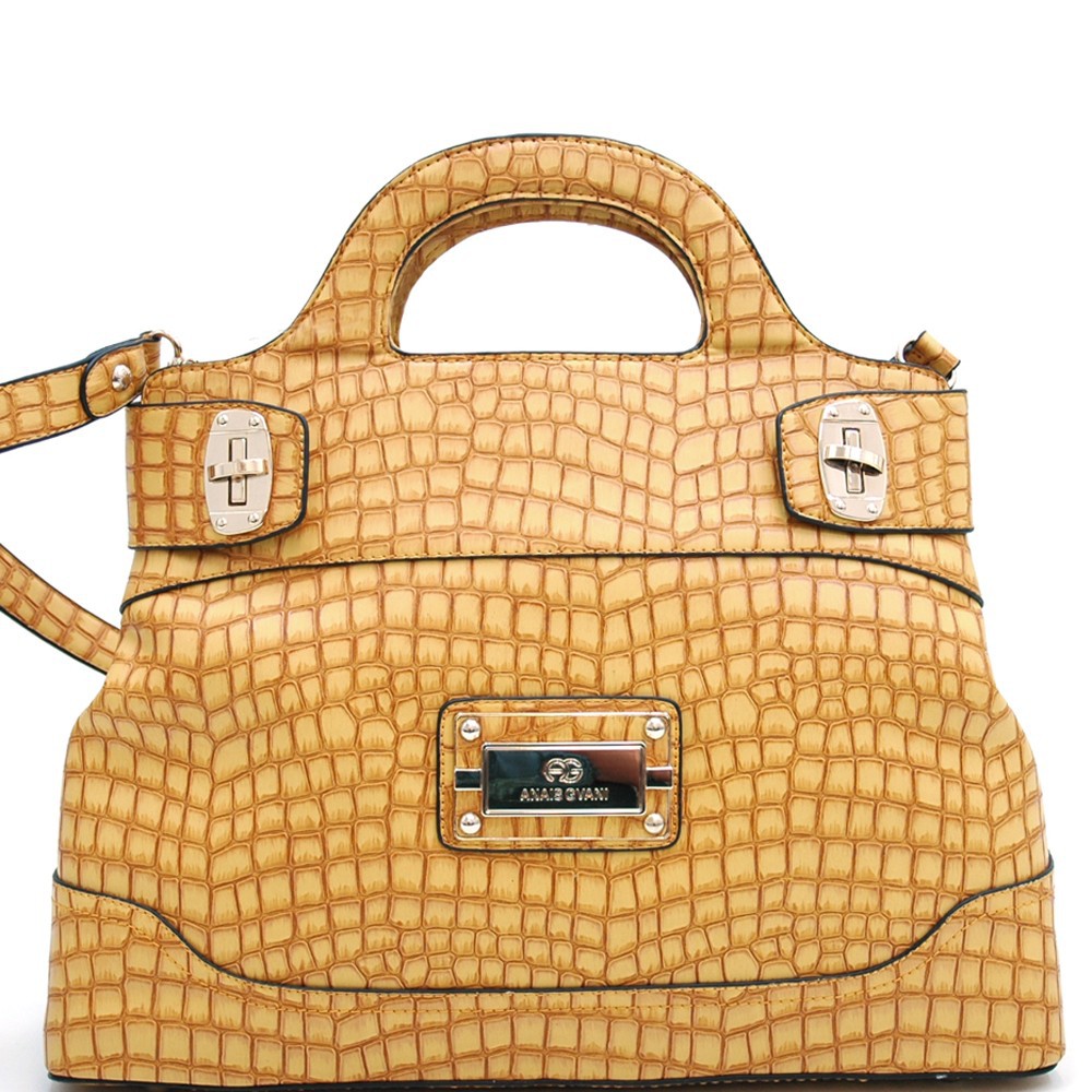 Chic Croco Fashion Satchel w/ Gold Accents for Women