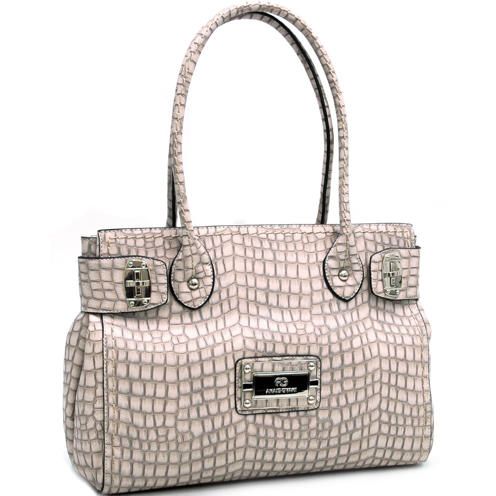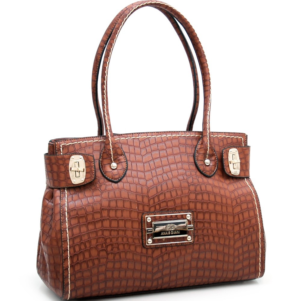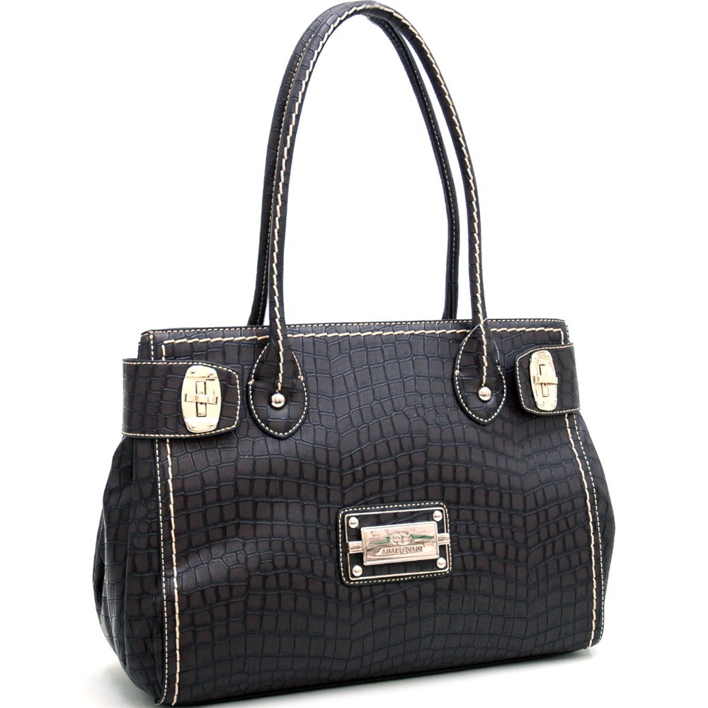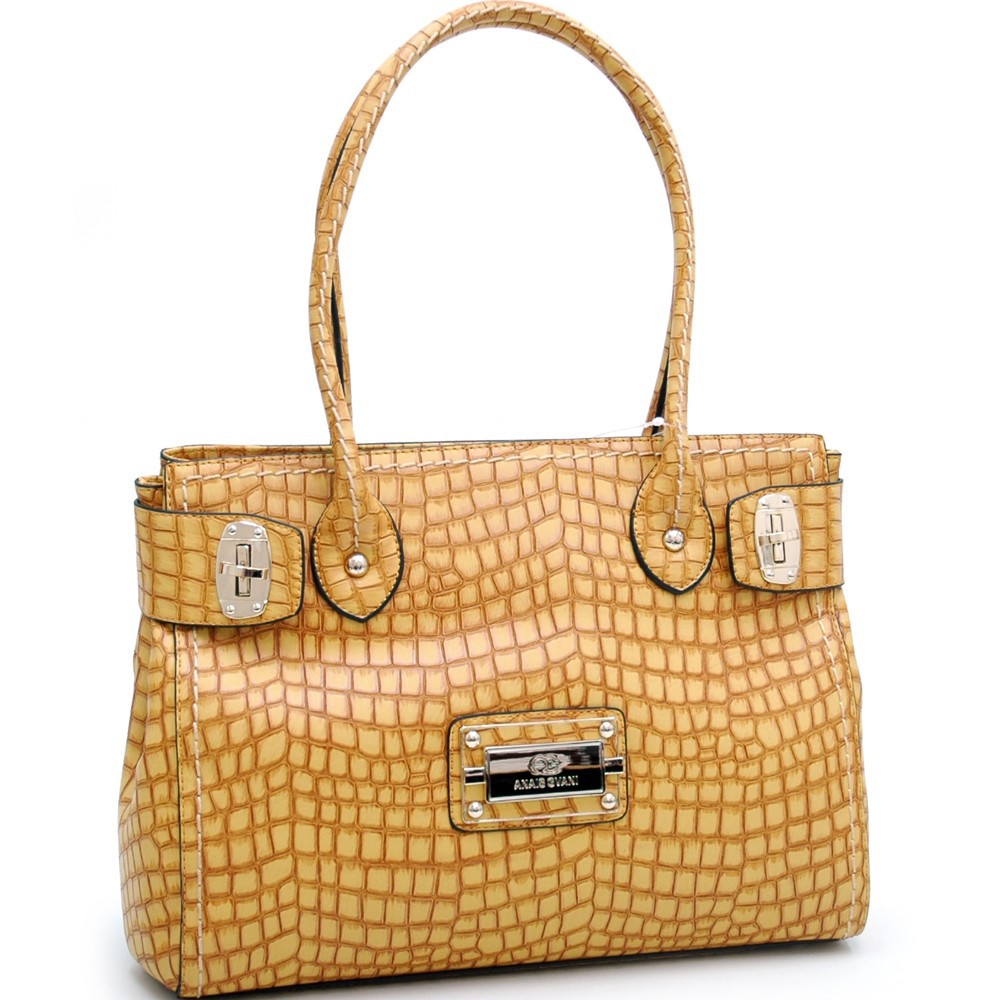 Chic Croco Fashion Shoulder Bag w/ Gold Accents
