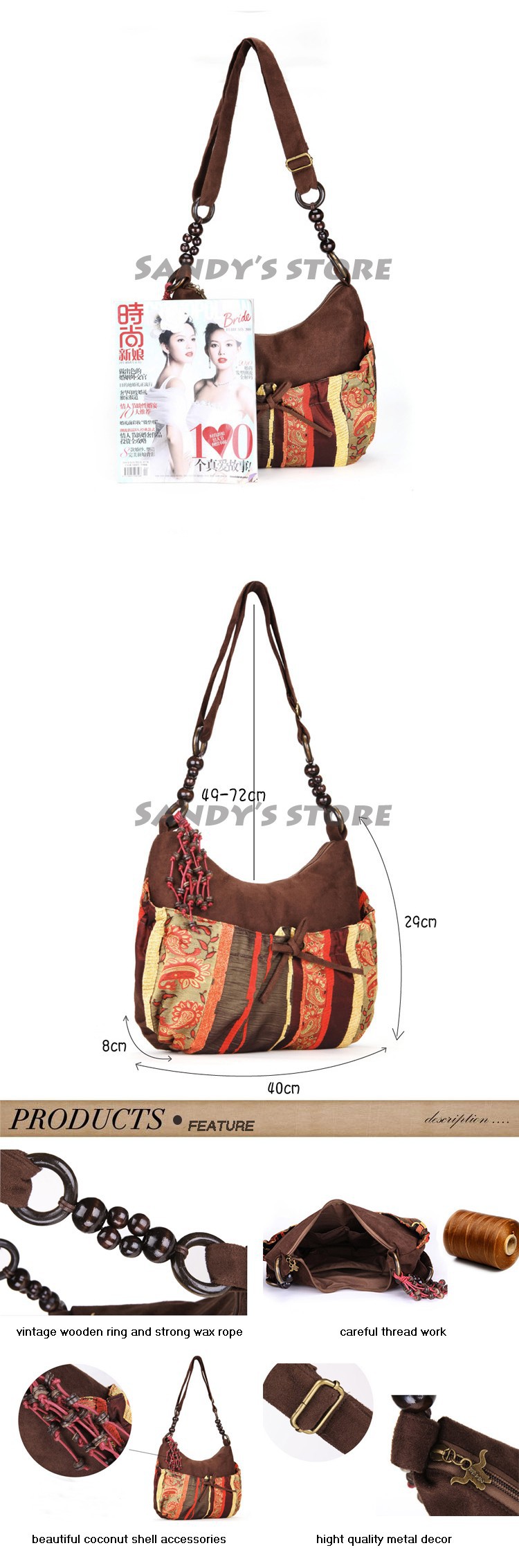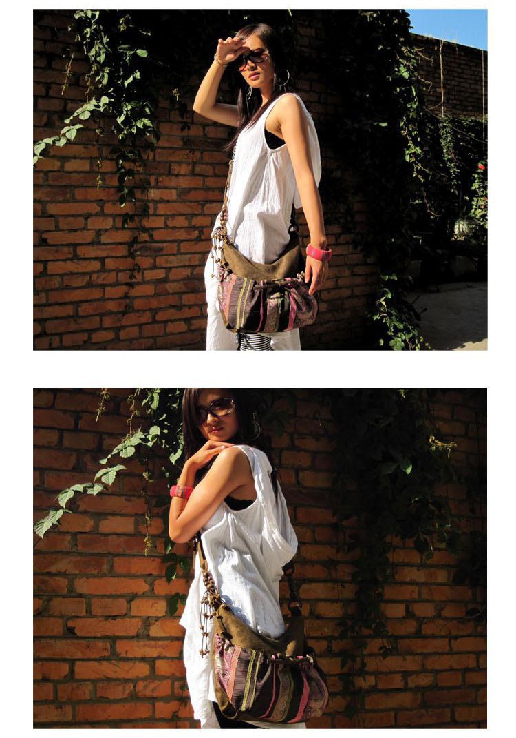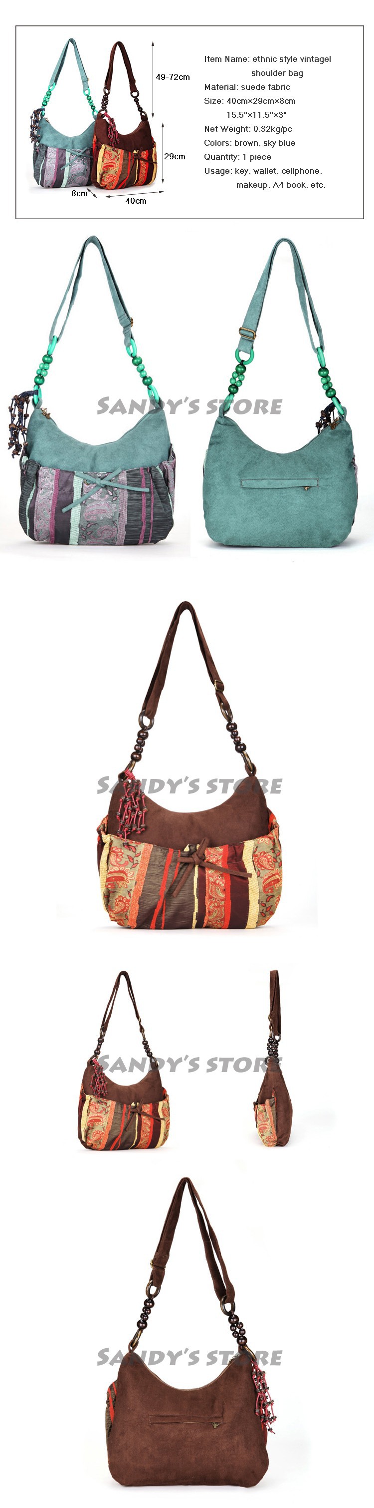 Chinese ethnic art cross body long strap leather bag suede messenger bag bohemian trendy bag Boho style brown and blue bag