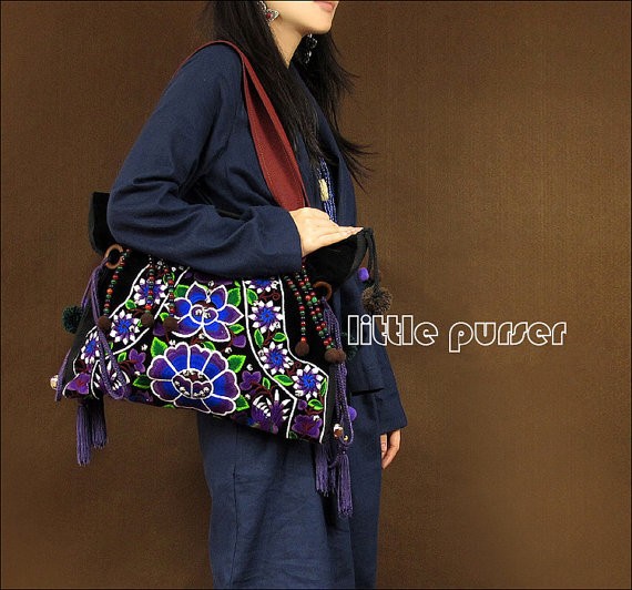 Chinese old ethnic style embroidery handbag shoulder bag/canvas bag messenger bag women hmong