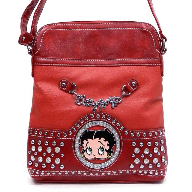 Classic Betty Boop Signature Messenger Bag w/ Rhinestone & Stud Accents