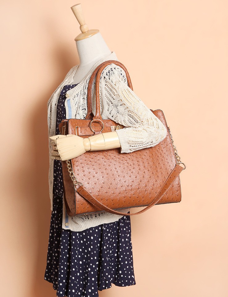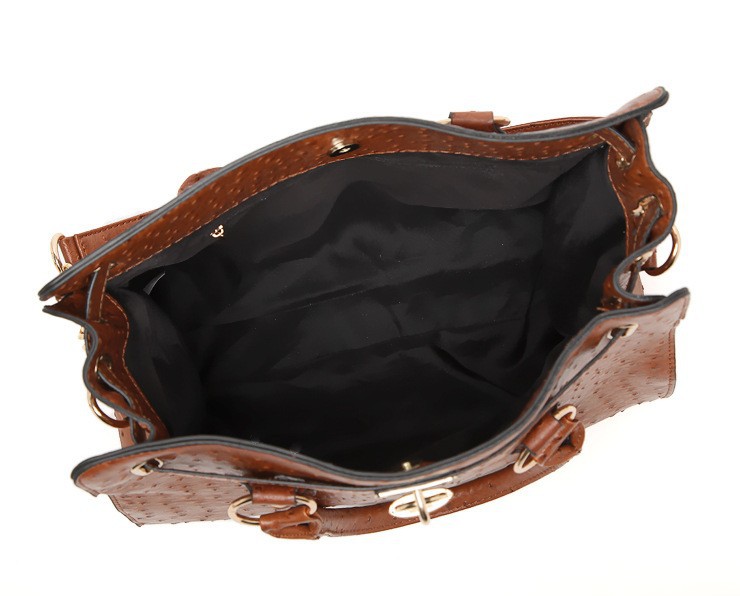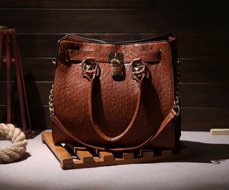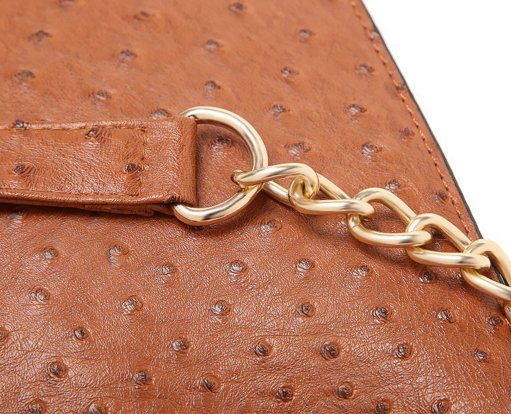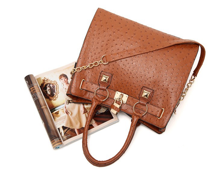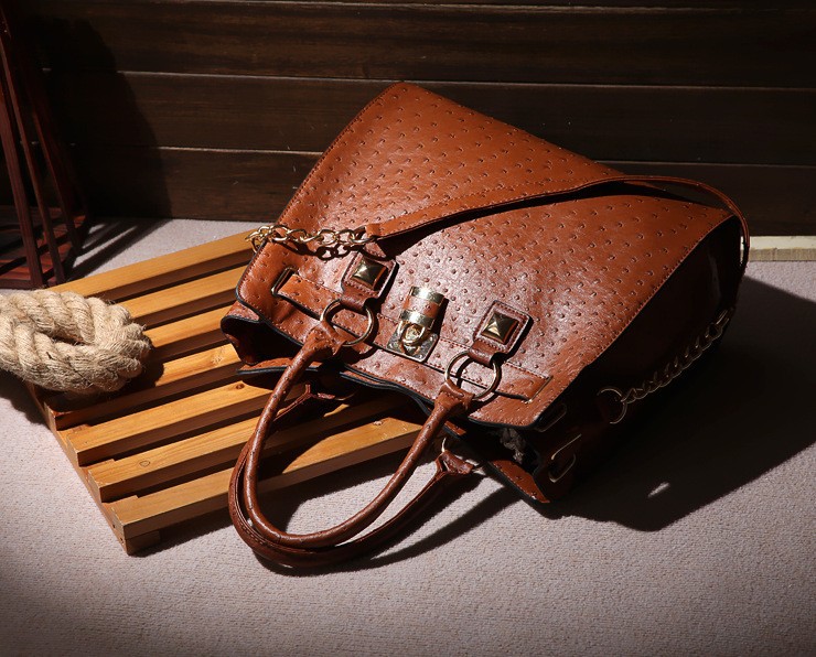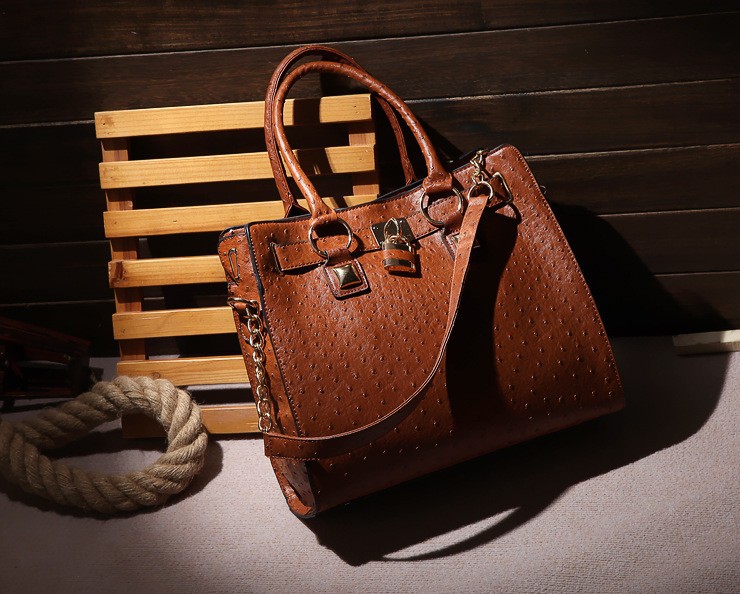 Classic retro atmosphere female brown ostrich pattern lock bag