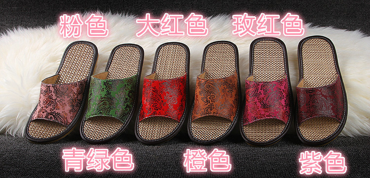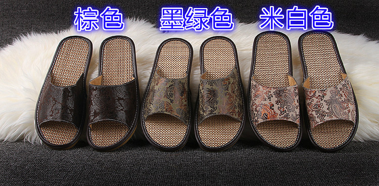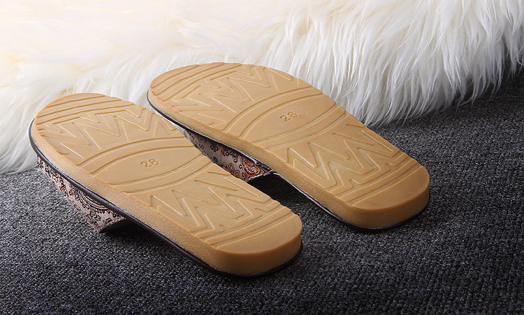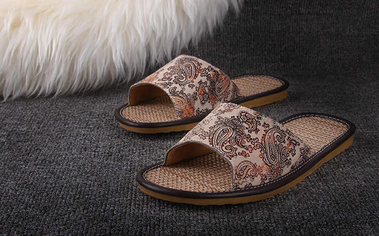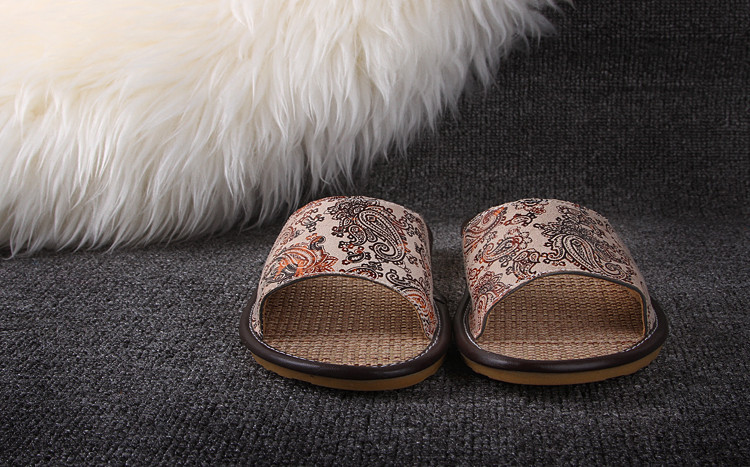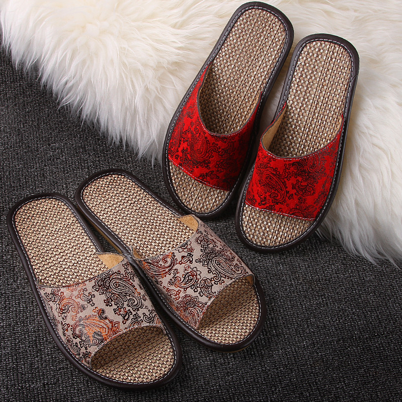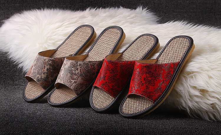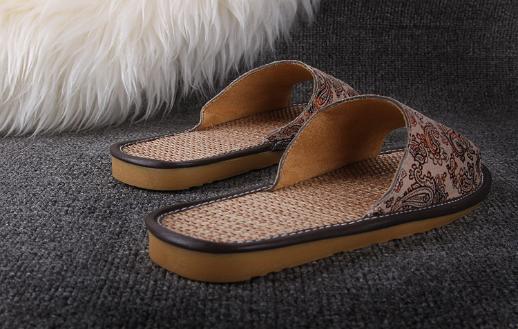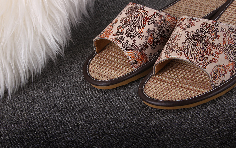 Classical Printing Leather Linen Lining Couple’s Summer Indoor Slipper, Comfortable Anti-Slip at Home Shoes for Men and Women