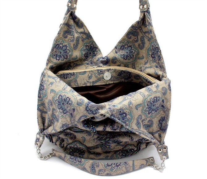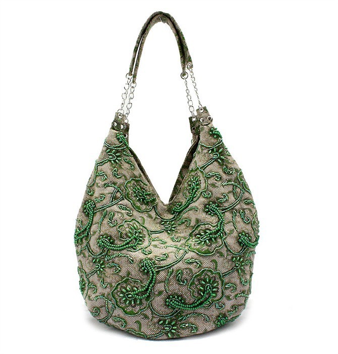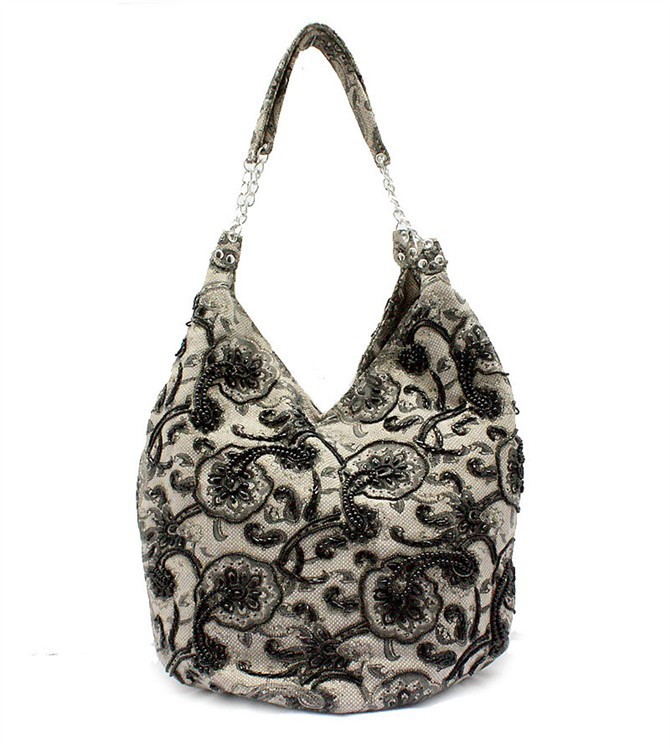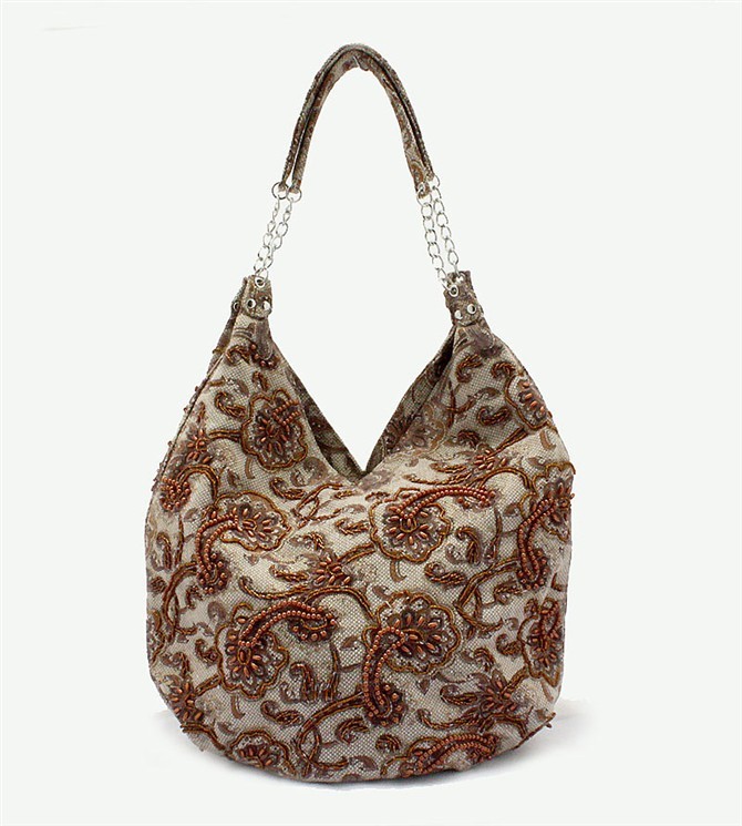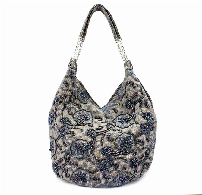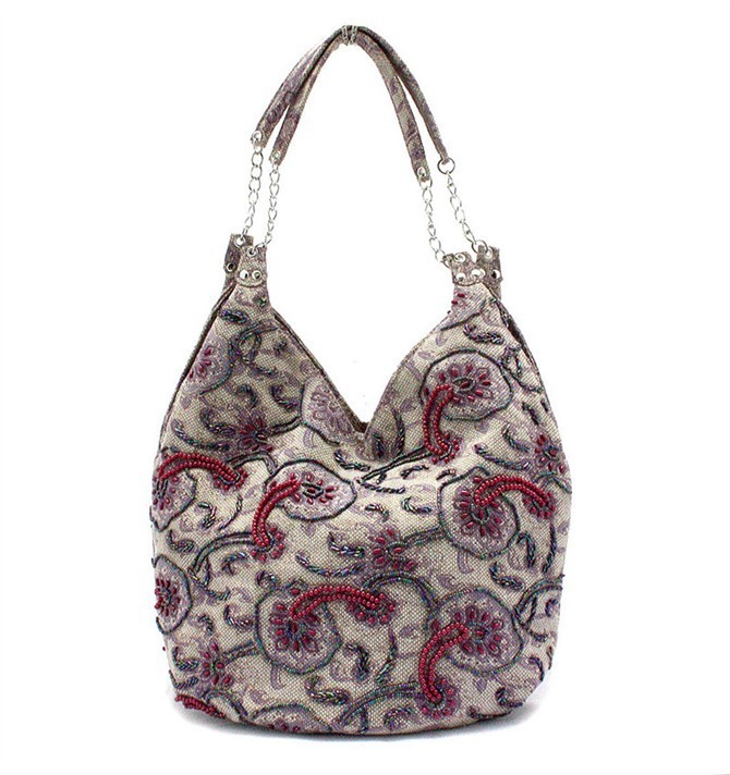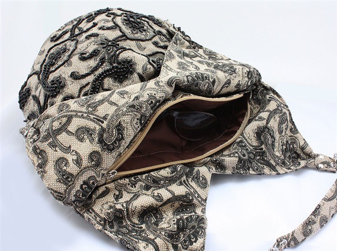Coffee Brown Handmade Ladies’ Linen Beaded Shoulder Bag Handbag Evening Bag ShoppingBag Free Shipping 2509-A