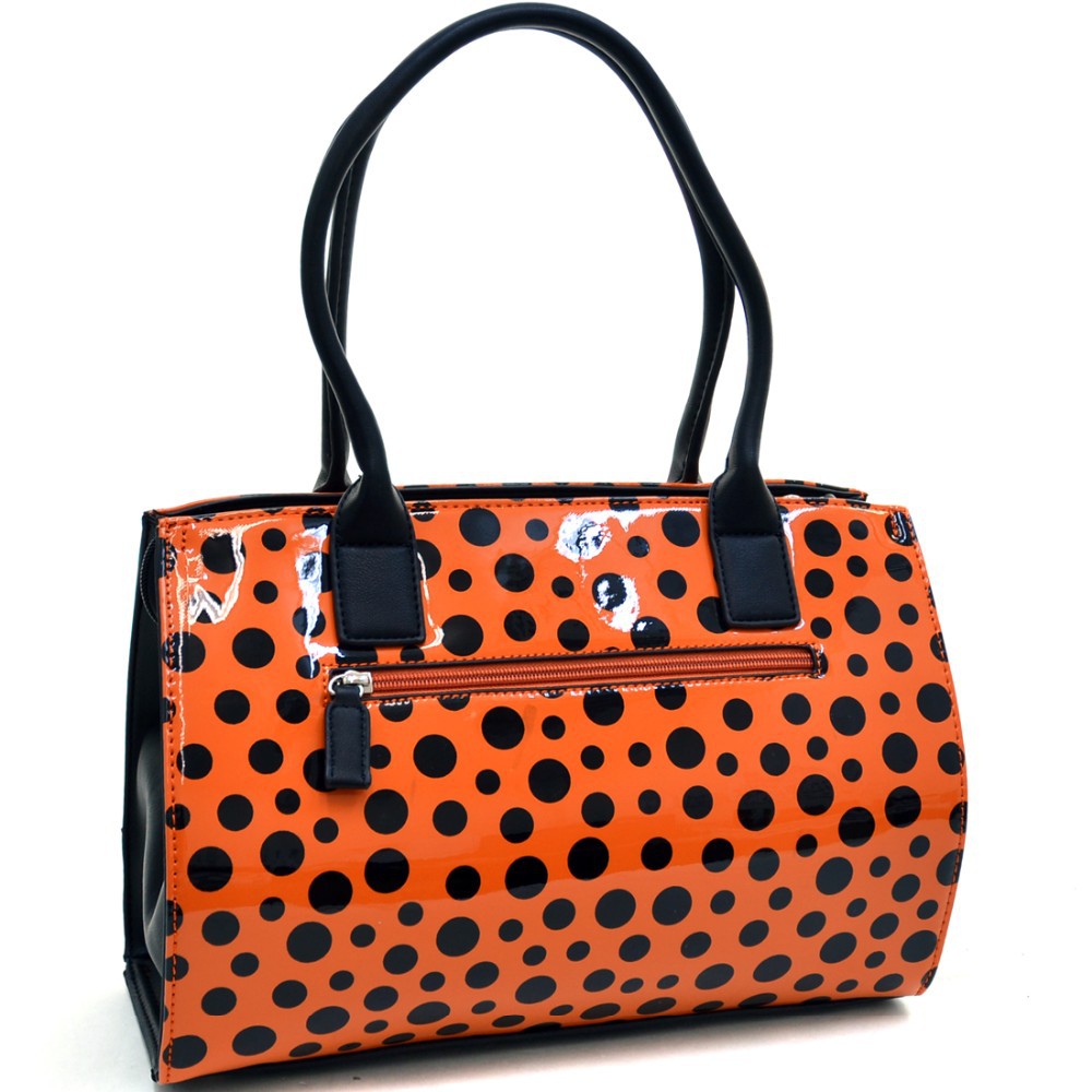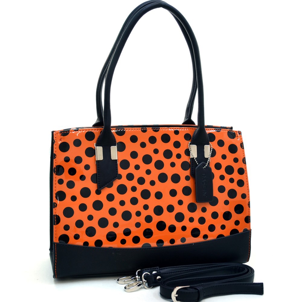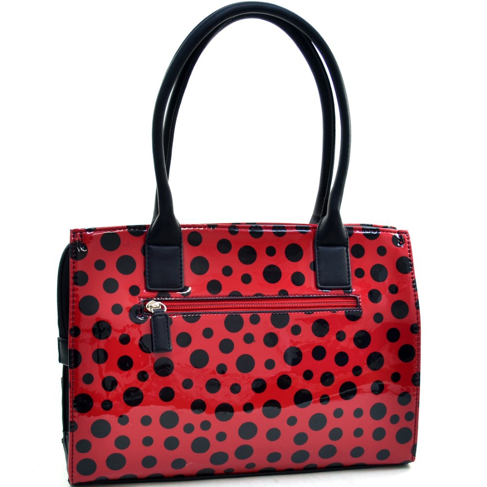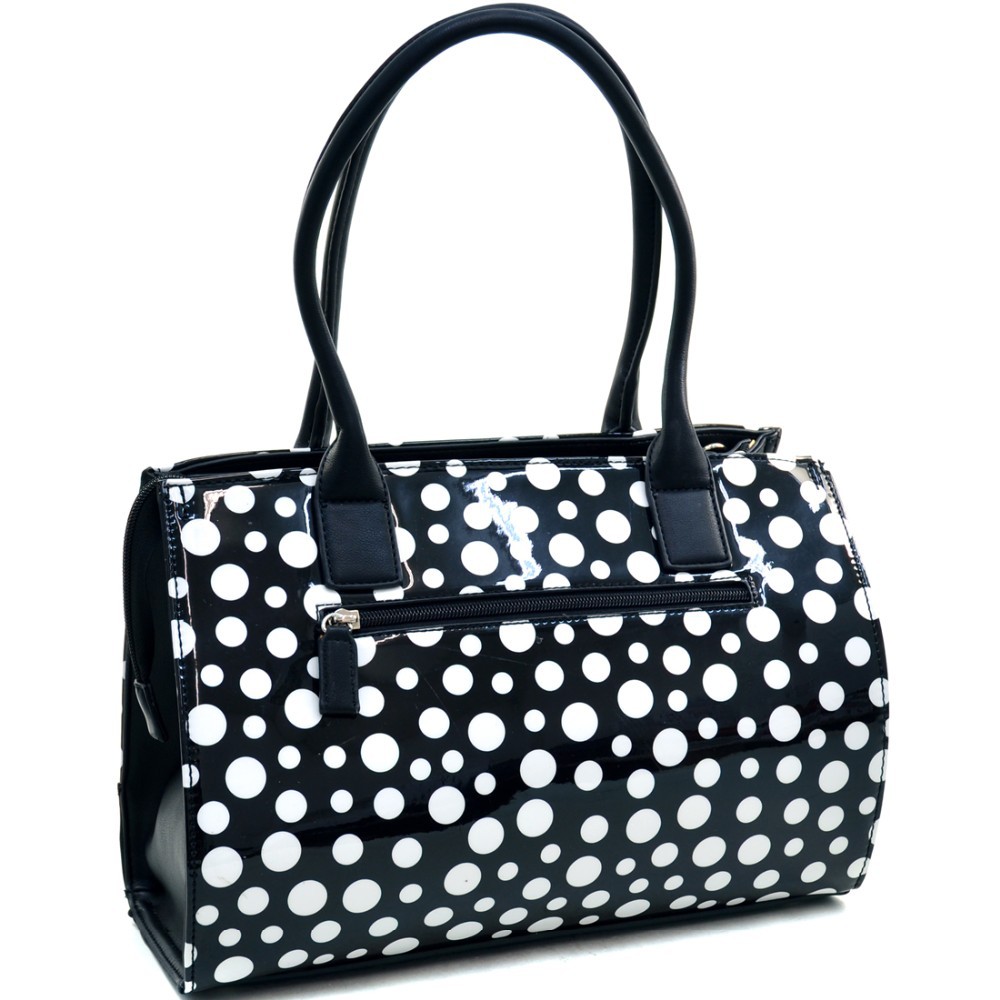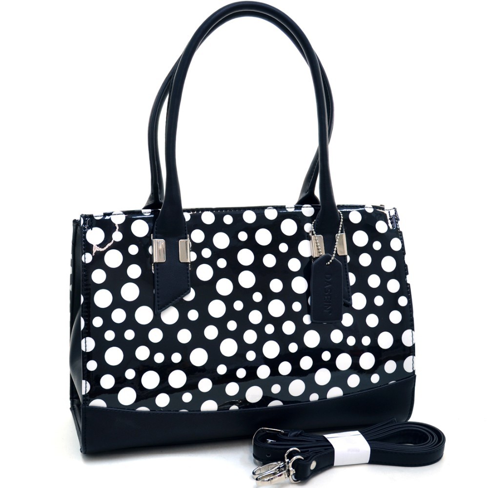 Convertible Faux Leather Trimmed Glossy Polka Dot Satchel