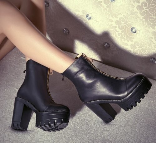 CooLcept Free shipping half ankle short natrual real genuine leather high heel boots women snow boot shoes R4572 EUR size 34-39