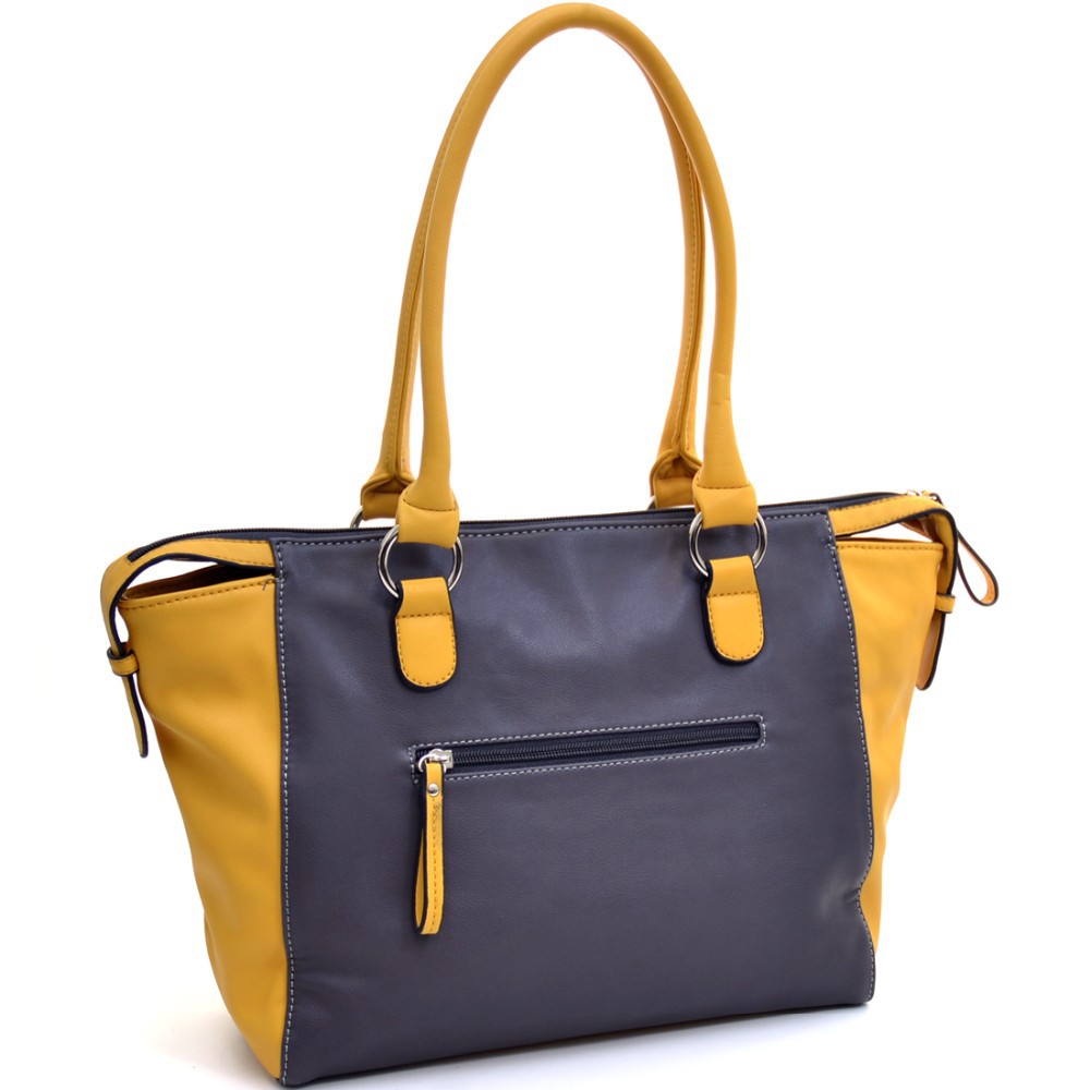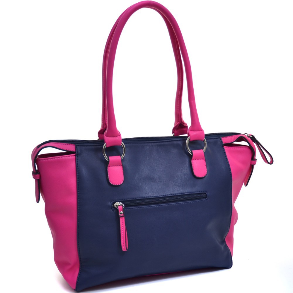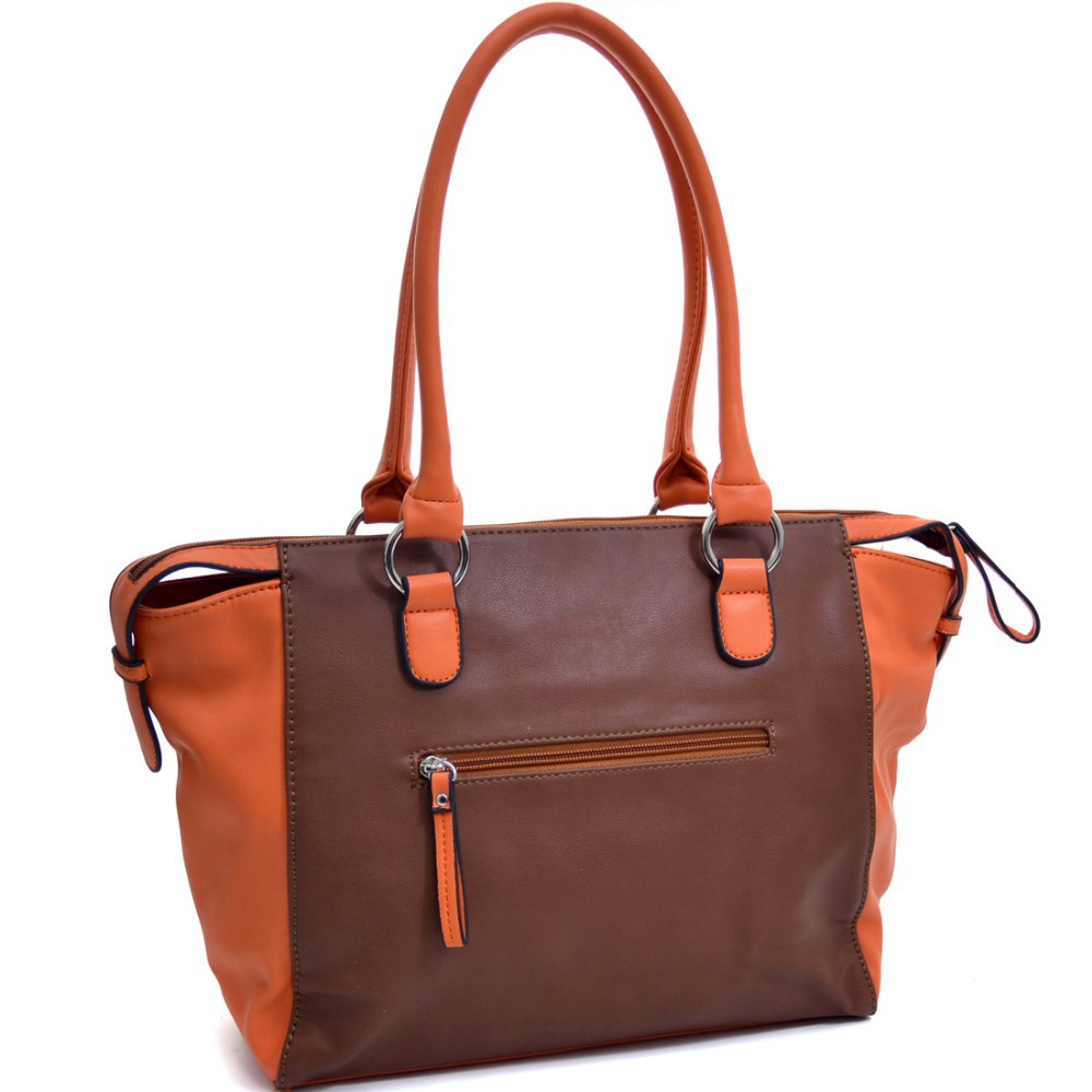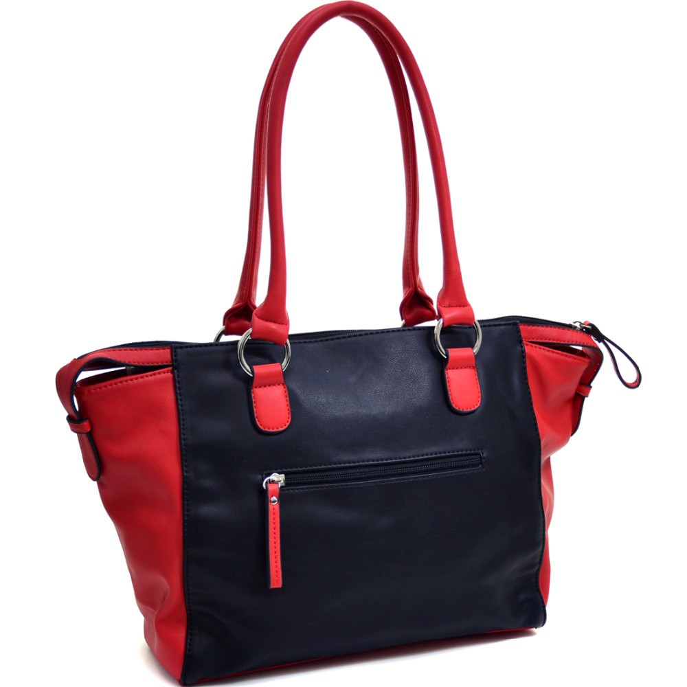 The two tone colors on this winged satchel bag by Dasein® are complemented by edgy pyramid studs. The pop of colors on this contemporary shoulder bag are sure to turn some heads. Its interior features multiple compartments so that you can keep everything in place. The long drop length of the dual shoulder straps adds ease and comfort for everyday use.
