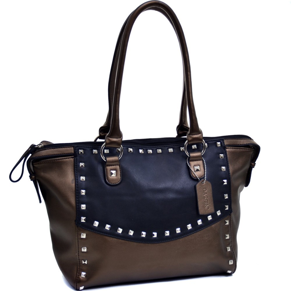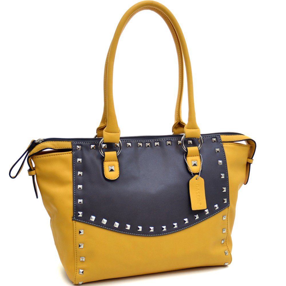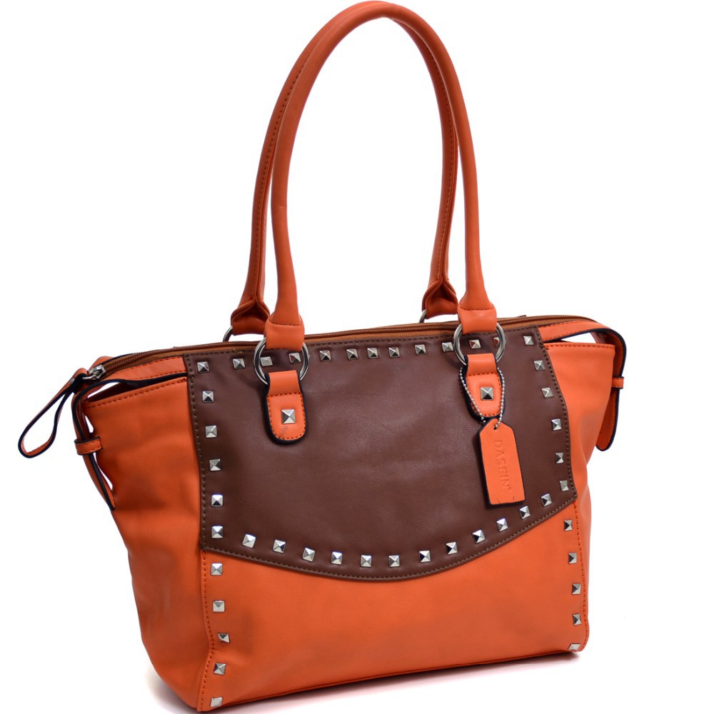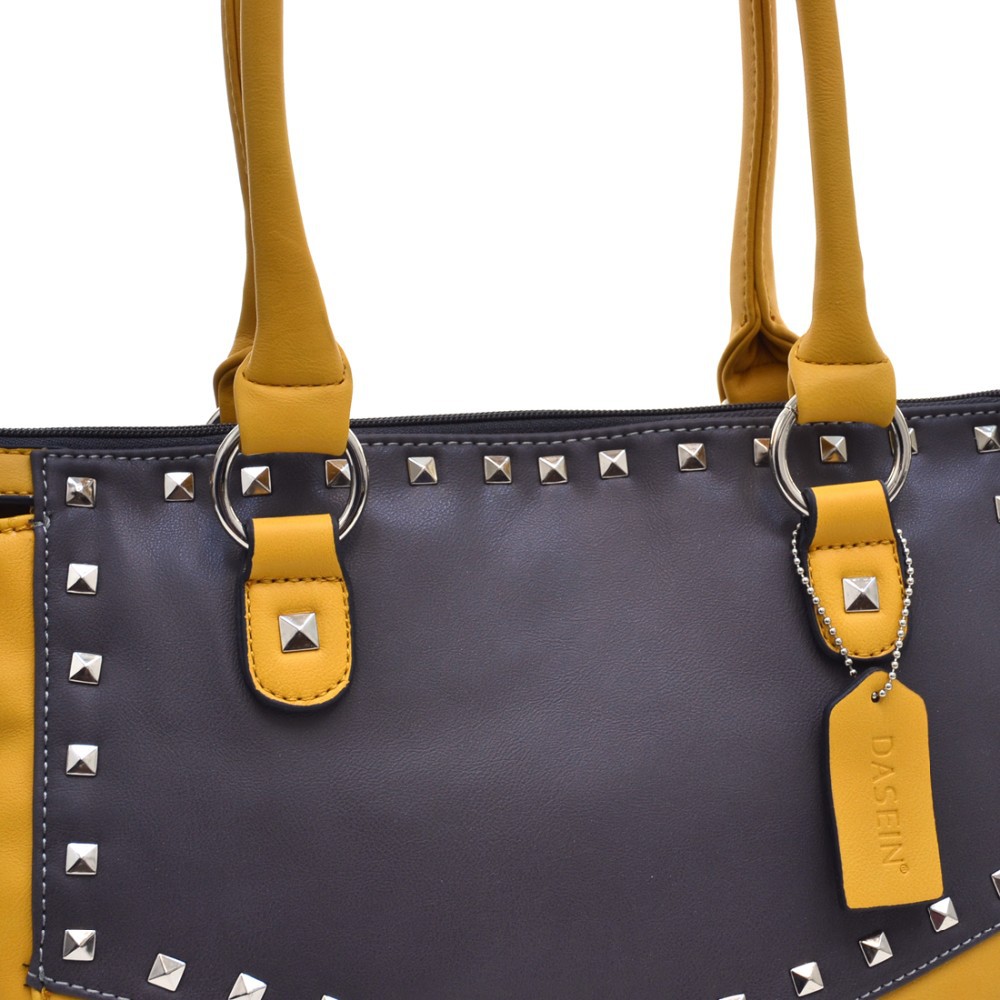 Dasein Pyramid Studded Two Tone Winged Satchel for Women