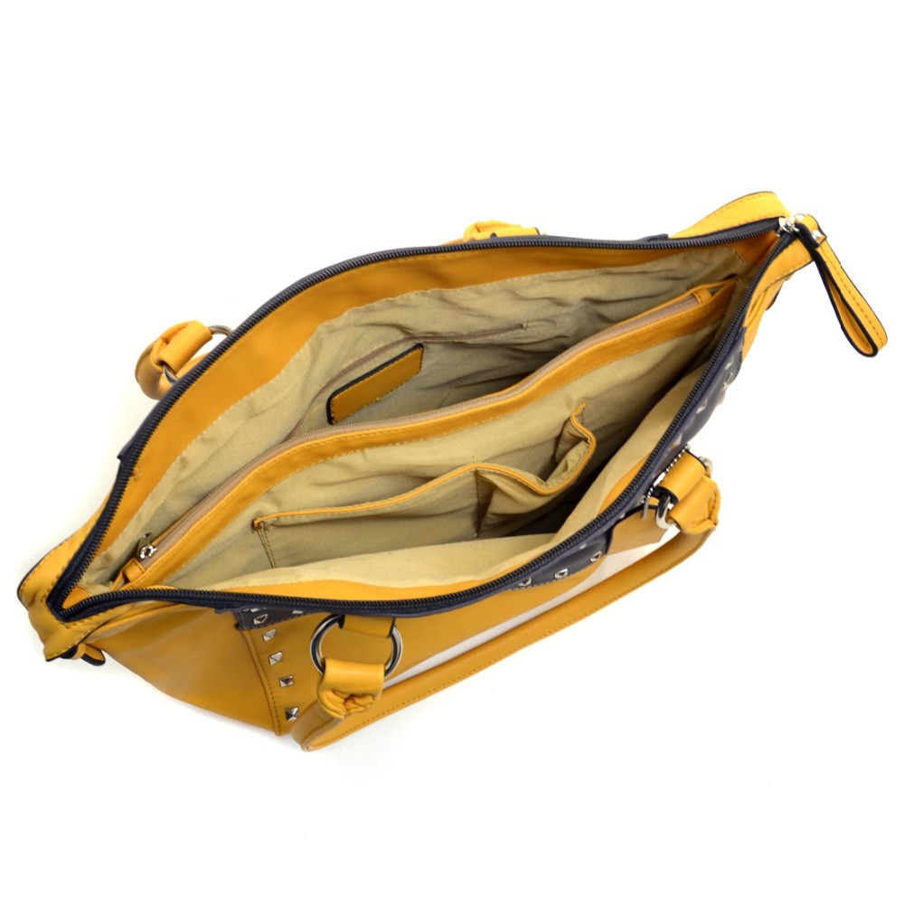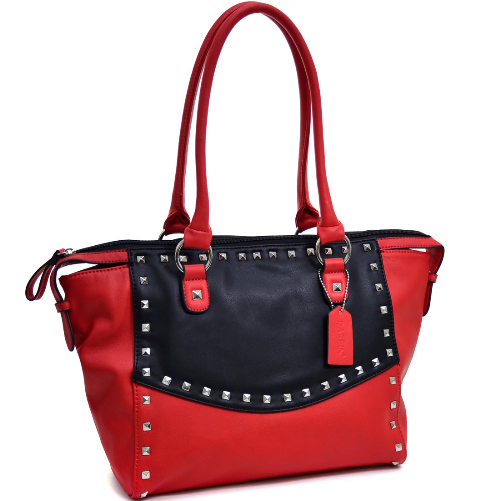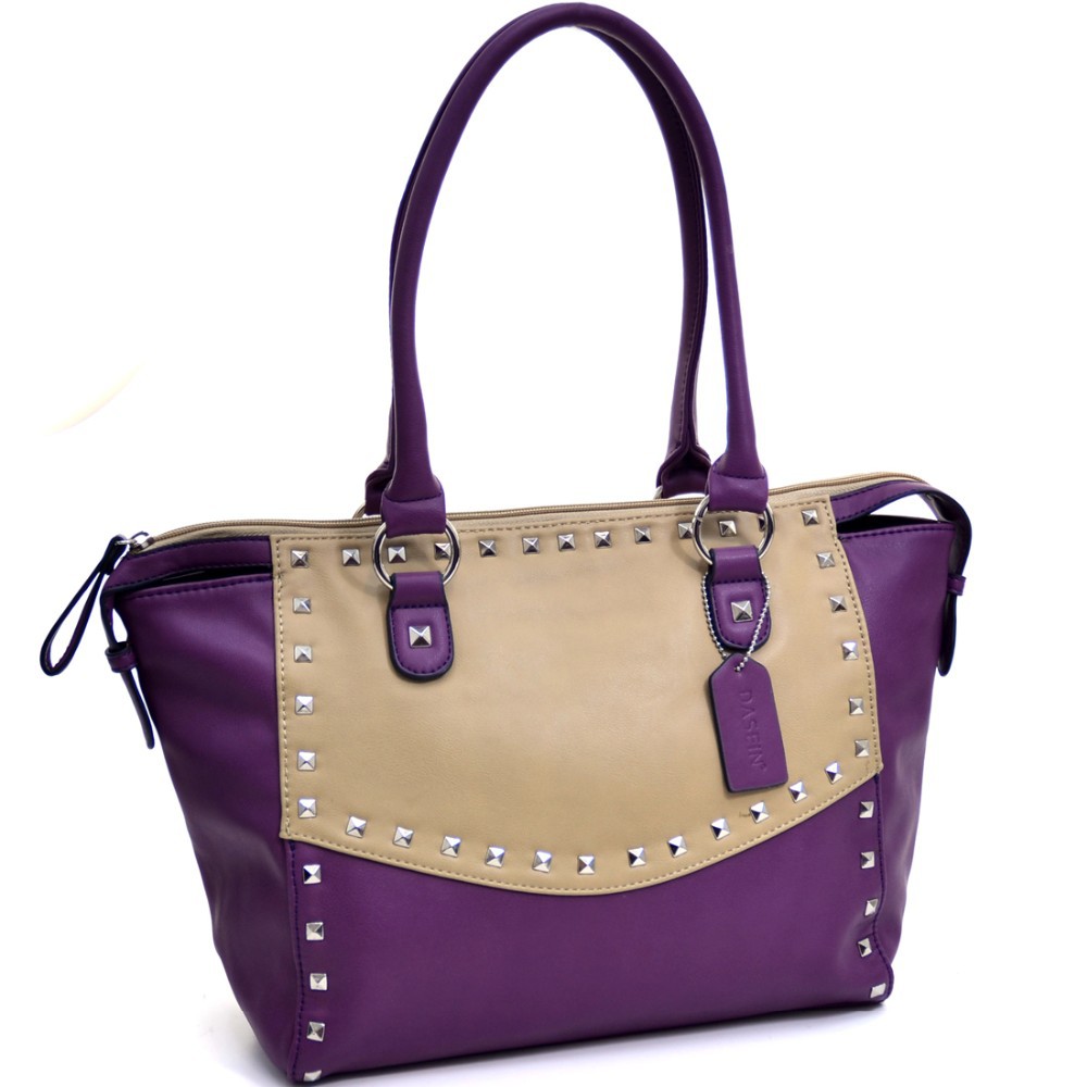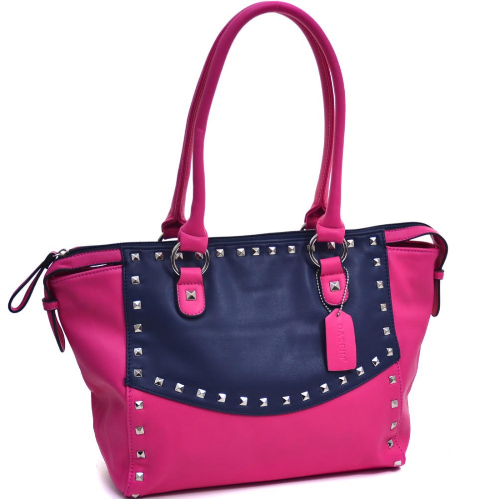 Dasein Pyramid Studded Two Tone Winged Satchel for Women