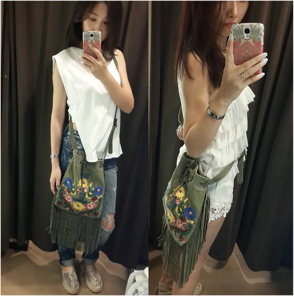 DENIM SUPPLY style leather embroidered bags Unique national wind package