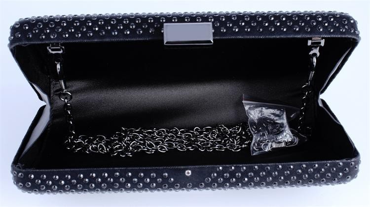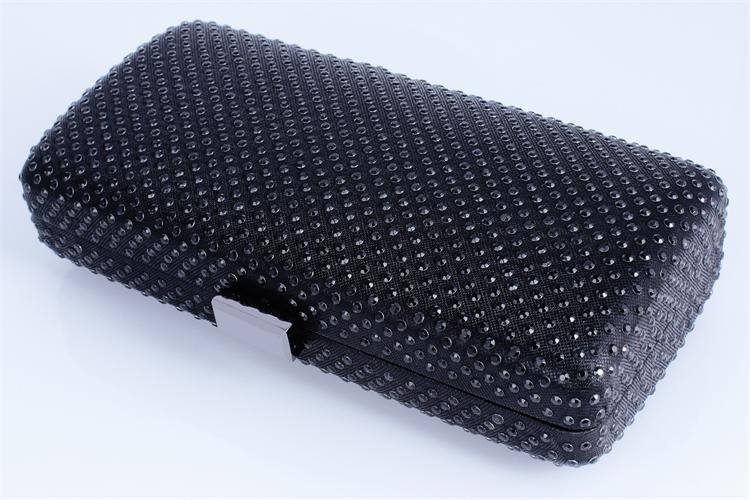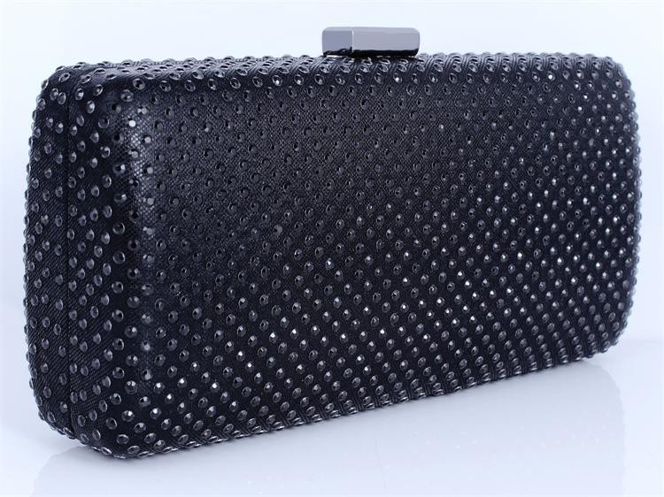 Design Women Party Clutches Black Diamond Hematite Crystals Hot Fix Gun Metal Plating Black Color PU Brand Deluxe Natural Shell