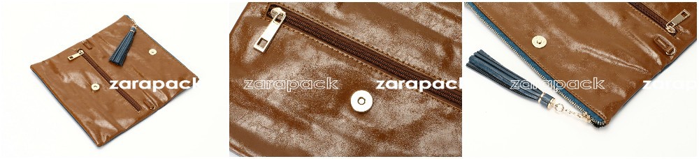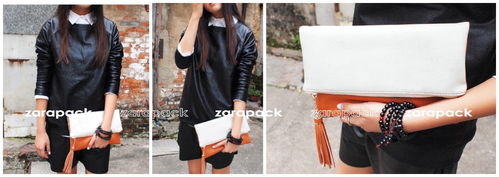 This elegant designer bag use high quality PU leather, featured by 2 tone leatherette composition, delicate tassel, two zipper compartments, detachable gold tone chain, can use as clutch, crossbody bag or shoulder bag.