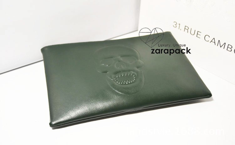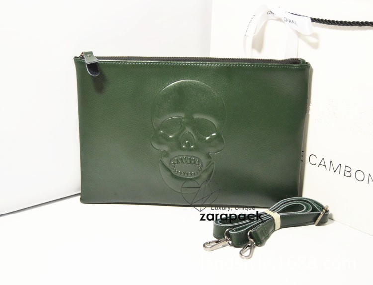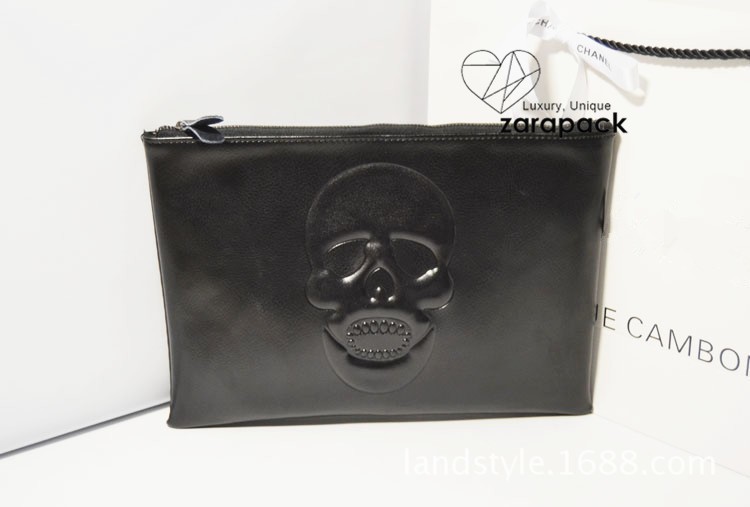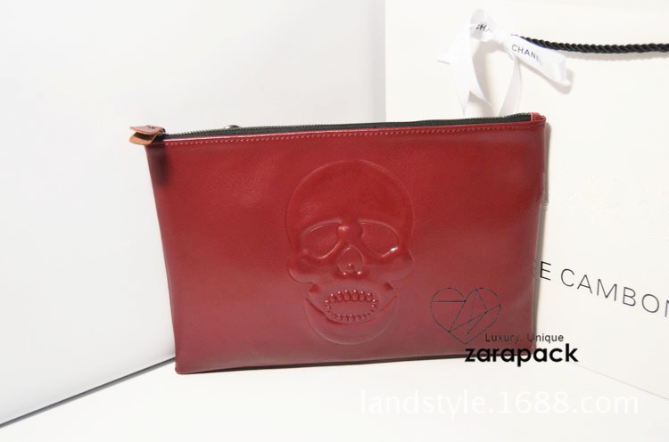 Featured by Genuine cow leather, 3D skull on the front, Zipper closure with pull tab, interior zipper closure pocket, detachable wristlet and detachable adjustable strap. One zipper pouch on the back. Detail pls refer to pic