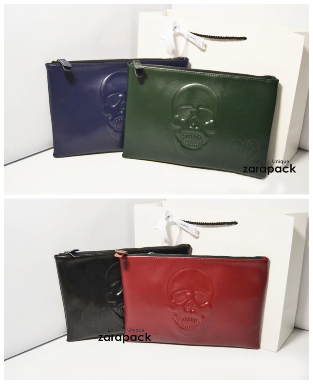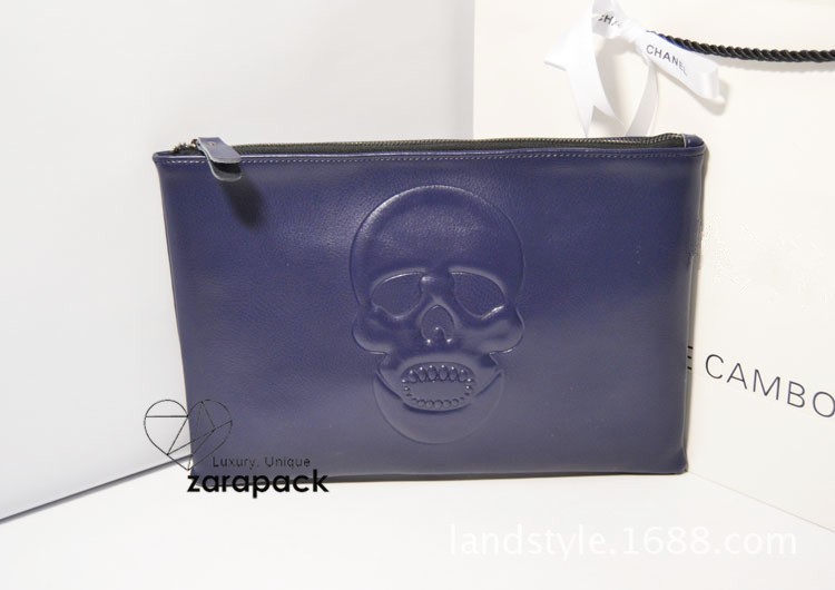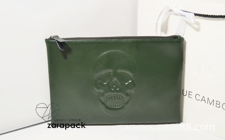 Designer 3D Skull Genuine leather Clutch Handbag 2 Handle Straps Purse Shoulder Bag IT BAG Wristlet