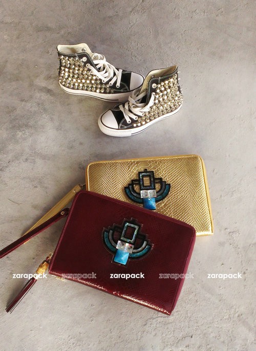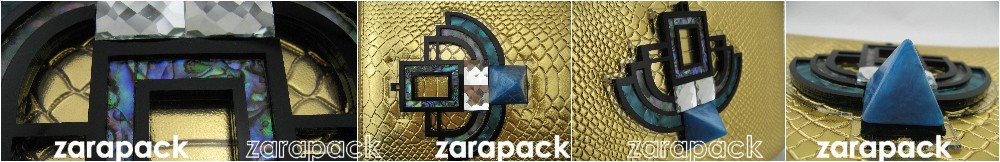 A very unique design bag, impressive 3D geometry decoration stone on the front, full of baroque style ; featured by considerate interior structure design include two compartments, one zipper bag and several card slots; detachable wristlet.