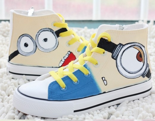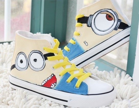 Despicable Me Minions Style Adult Canvas Sneaker for Men Women Sneakers Hand-painted Shoes High Lace-up Shoe (Pattern K) EU35-44