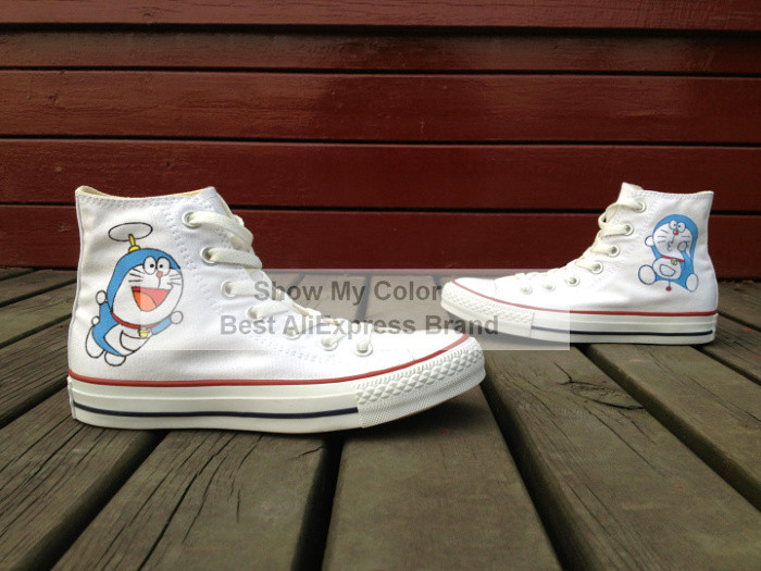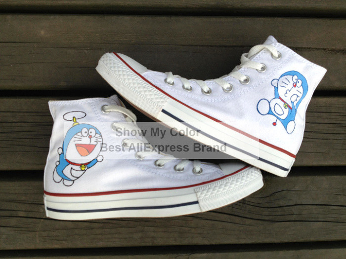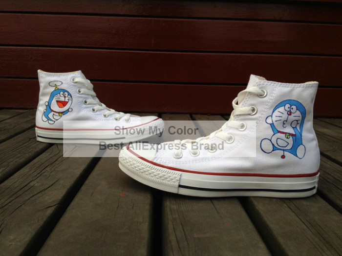 Doraemon Cartoon hand painted customizable high top canvas sneakers for Adults